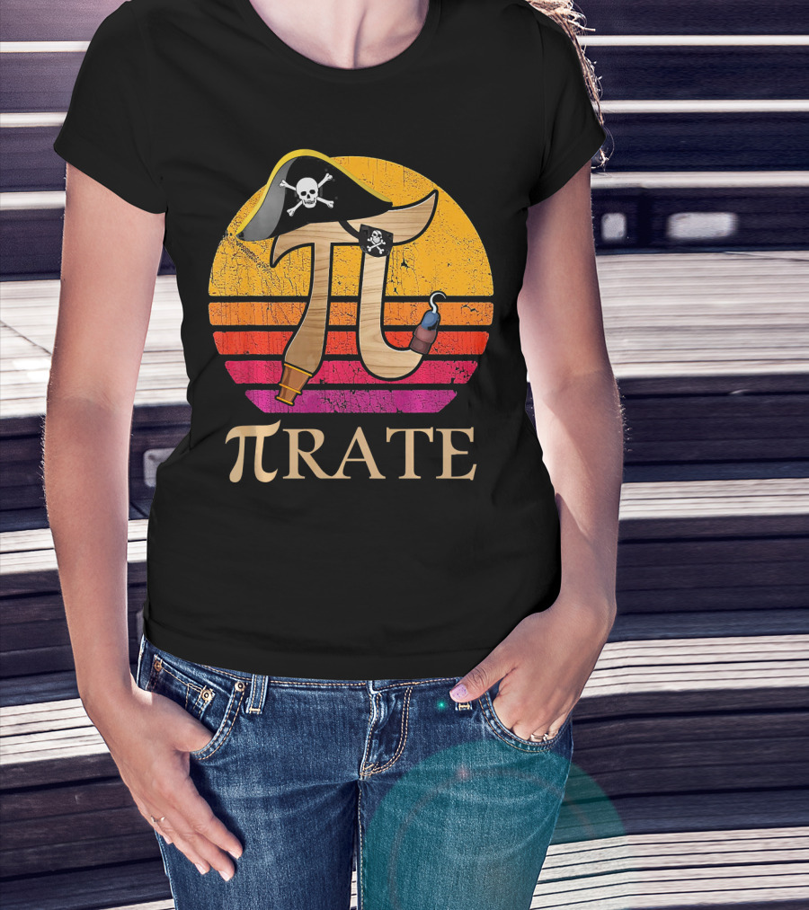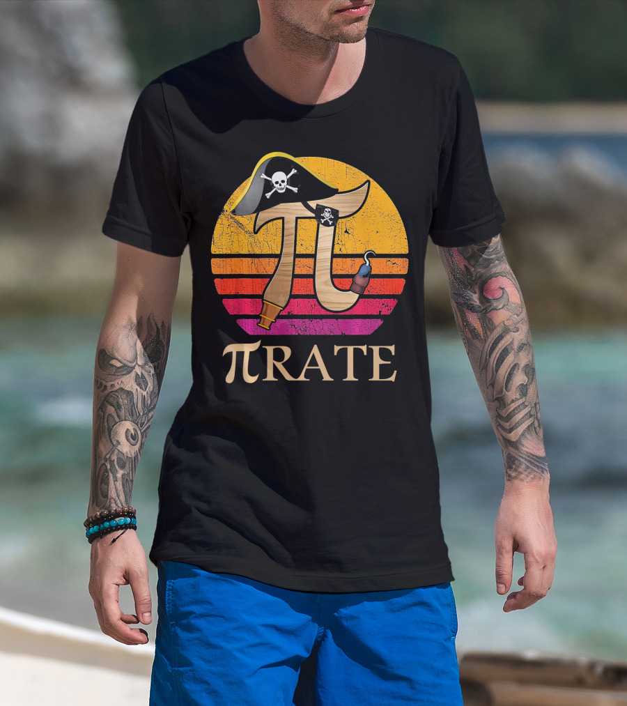 Pi Rate Sunset Buccaneer Emblem T-Shirt