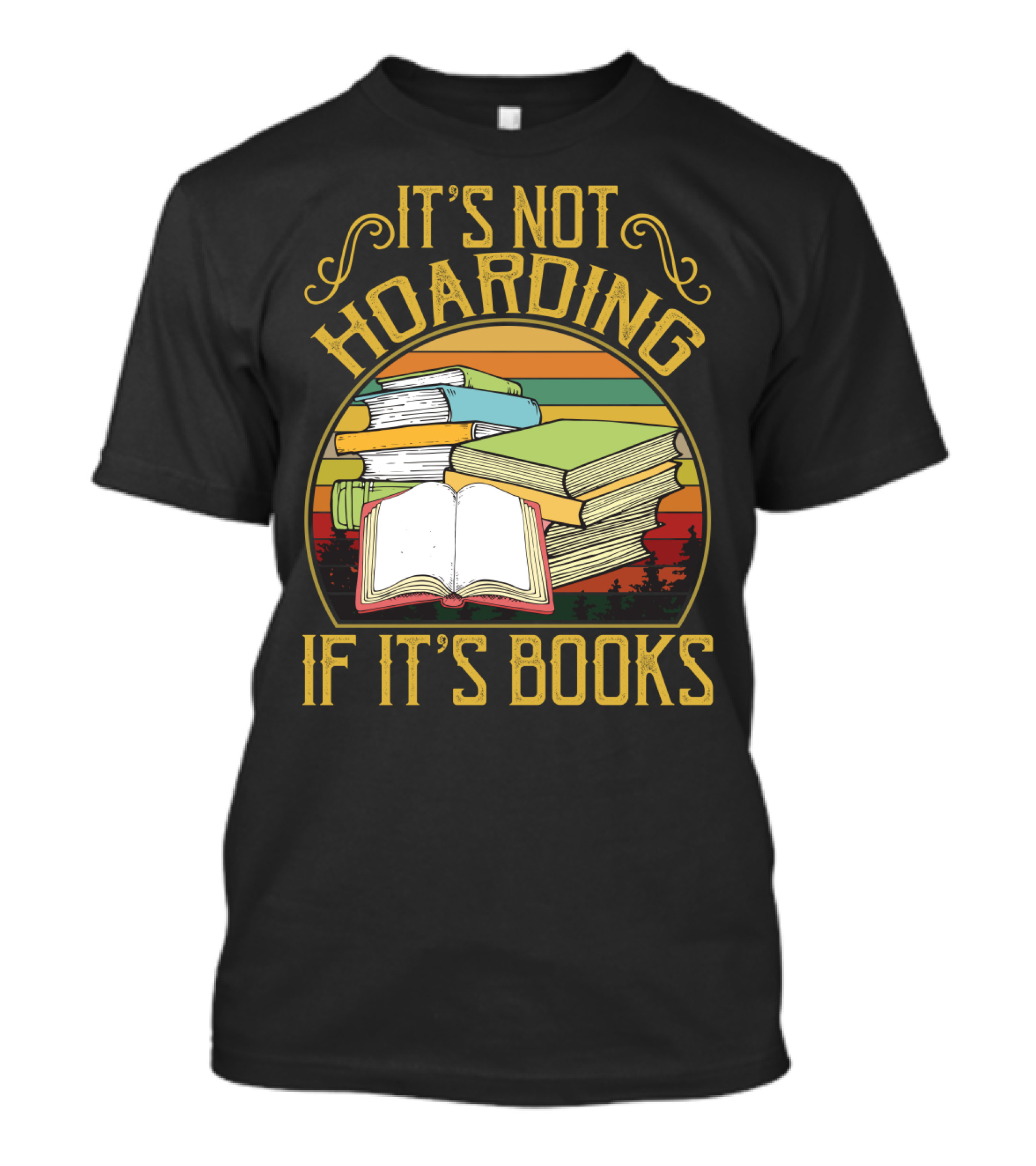 The It's Not Hoarding If It's Books Stacks on Retro Sunset Background T-shirt is designed for everyday wear and a consistent fit. Fabric is pre-shrunk ring-spun cotton with durable stitching. See the size chart below for exact measurements.