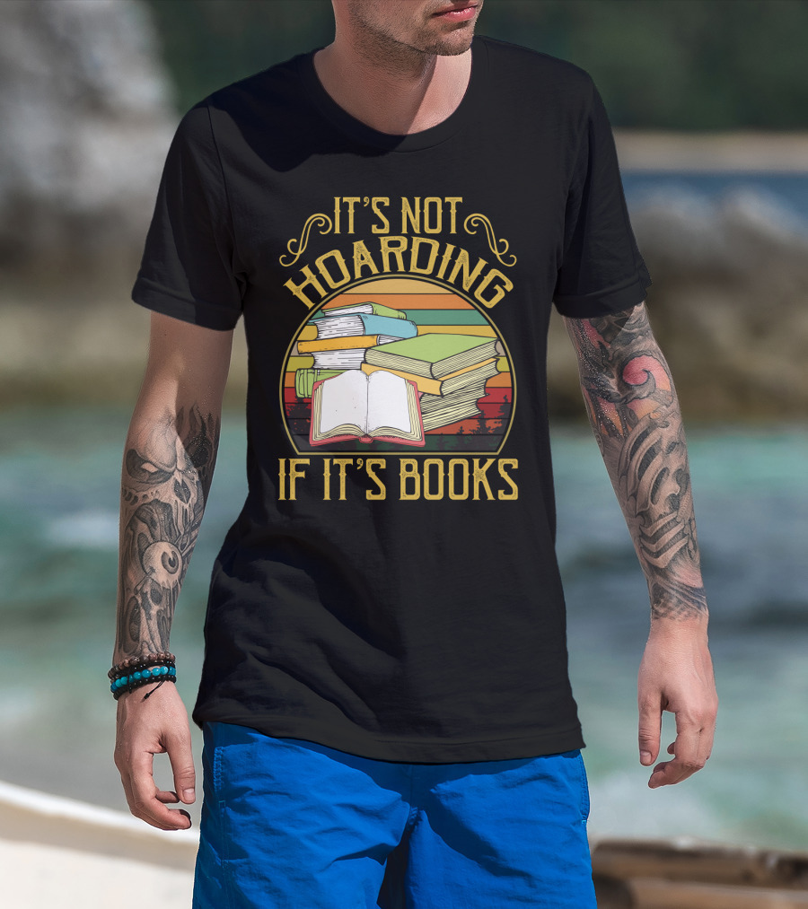 It's Not Hoarding If It's Books Stacks On Retro Sunset Background T-Shirt