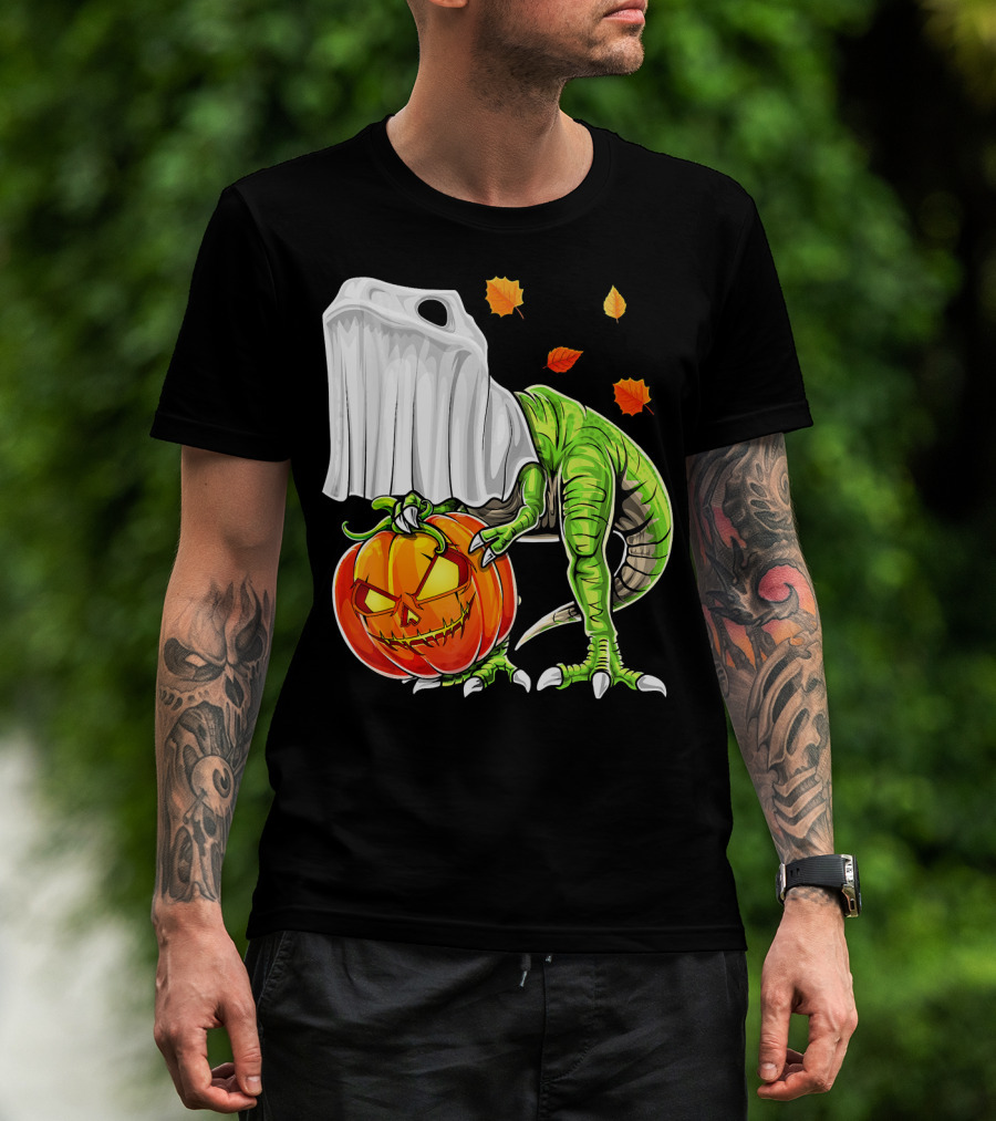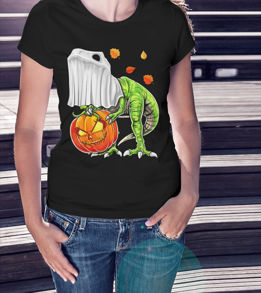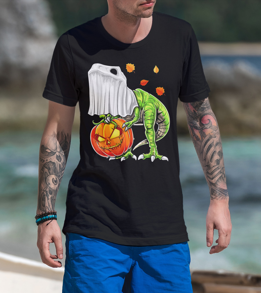 Halloween Dinosaur Ghost Pumpkin Jack Leaves T-Shirt