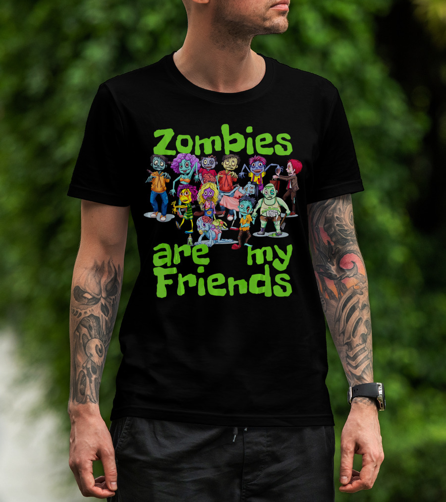 Zombies Are My Friends Cartoon Characters T-Shirt