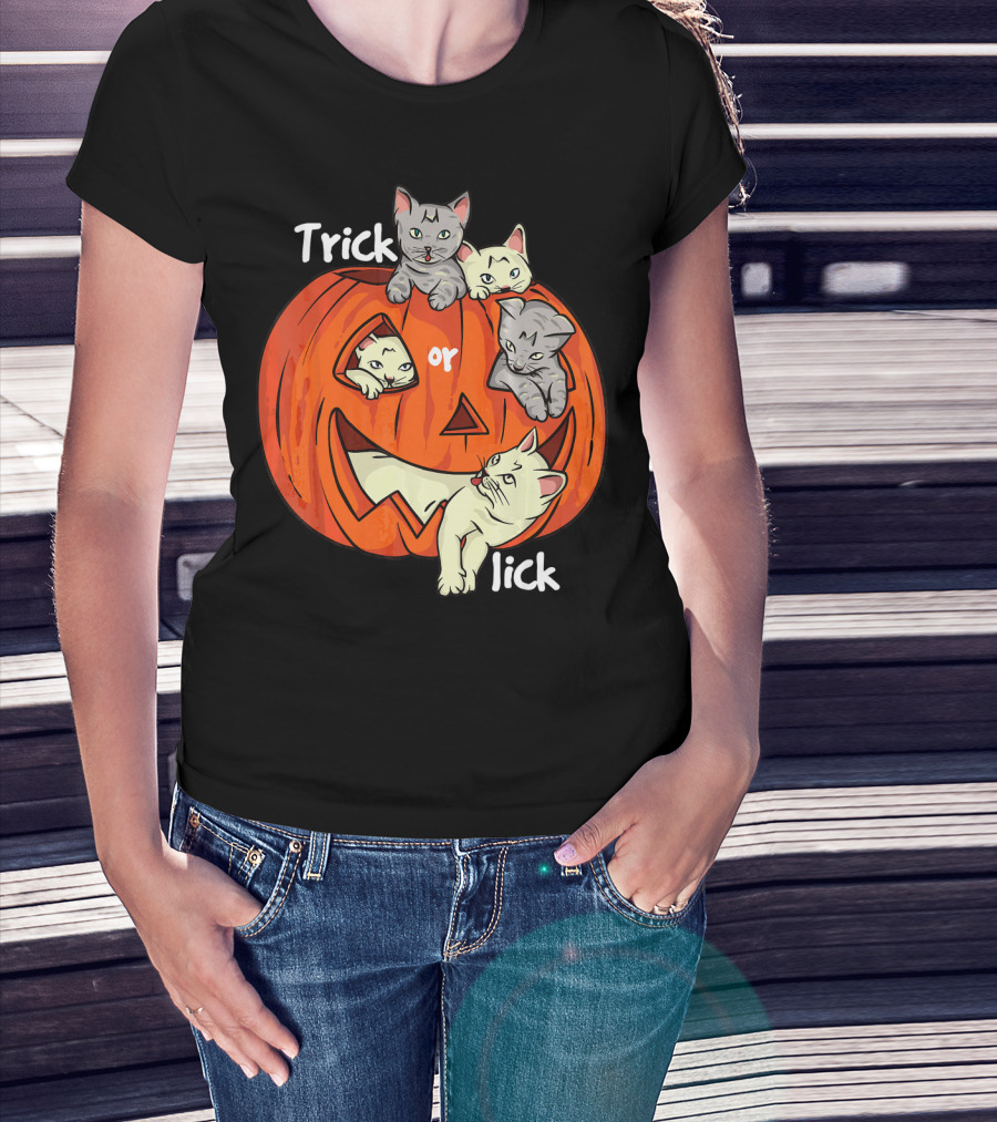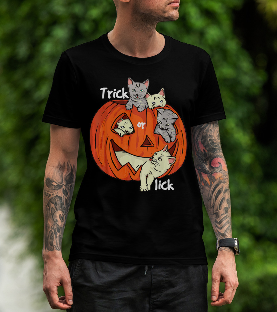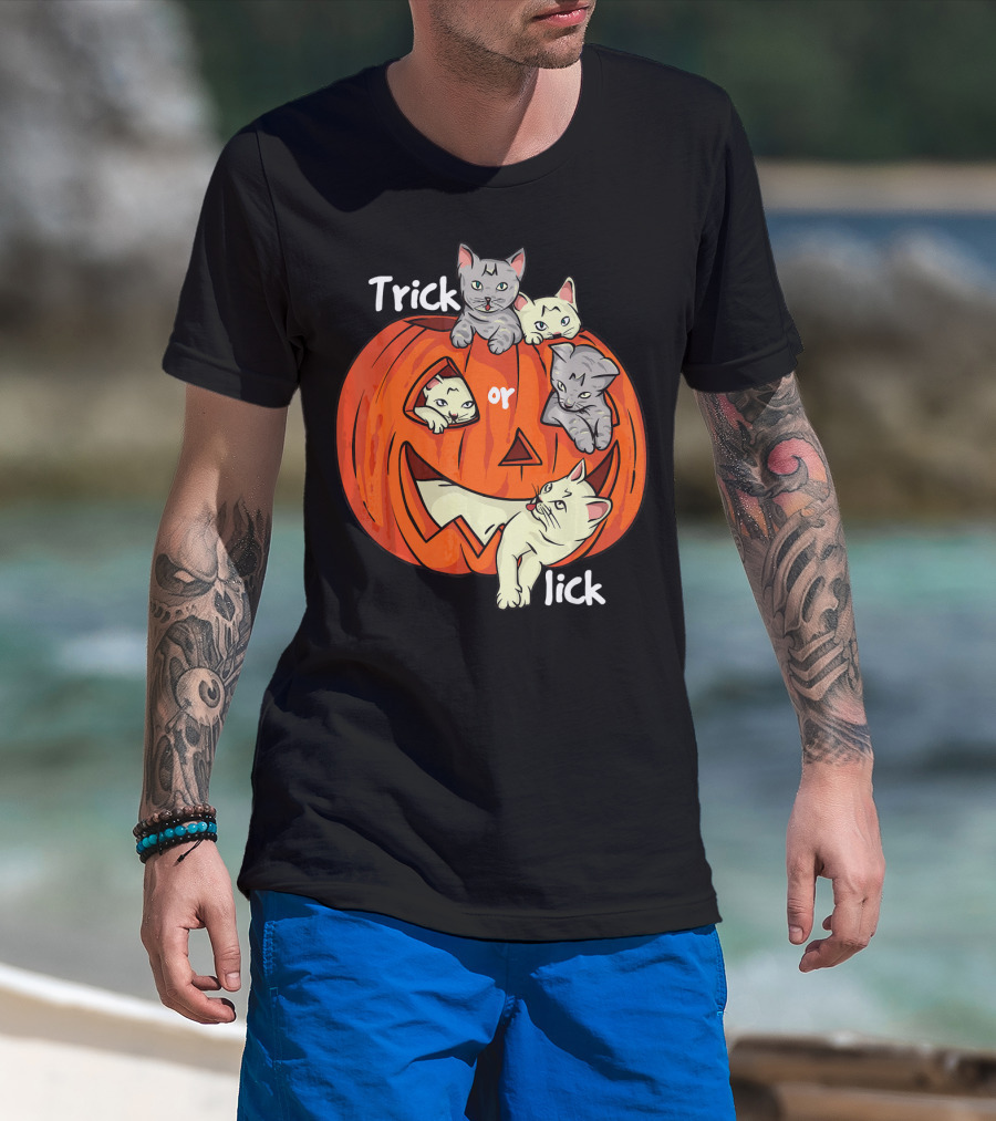 Trick Or Lick Cats In Carved Pumpkin Funny Cat T-Shirt