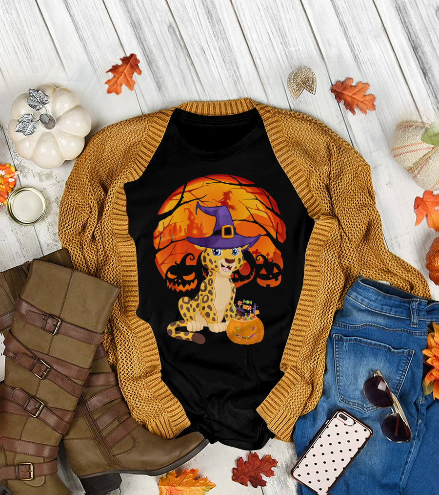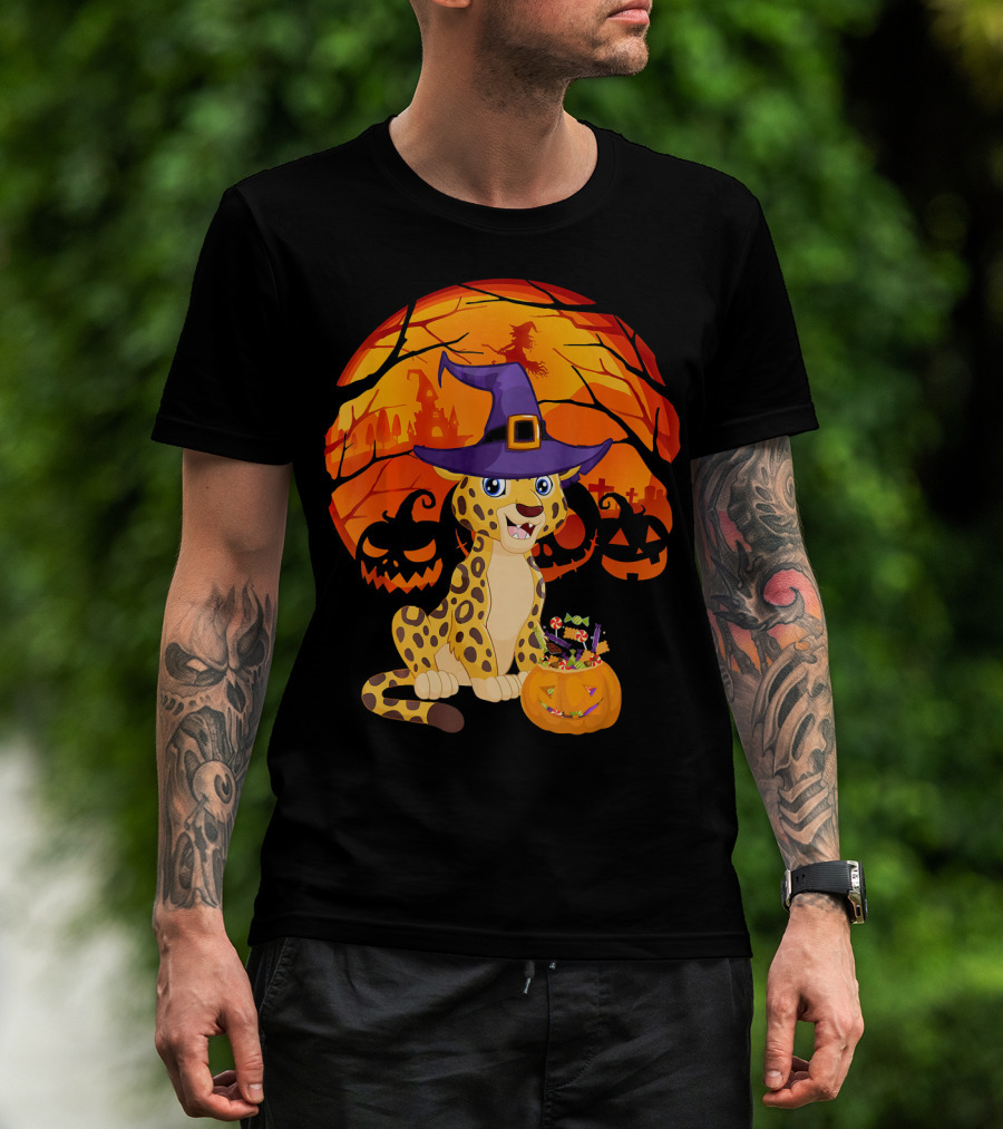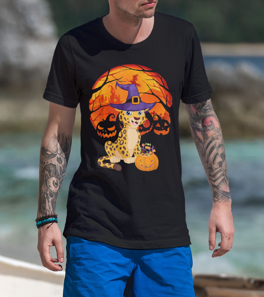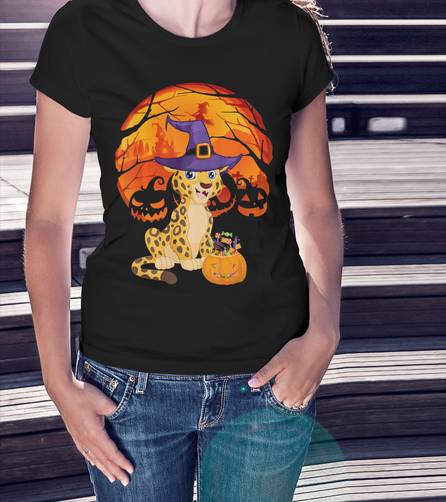 Halloween Costume Leo Witch Hat Leopard Jack-o'-Lantern Moon Shadows T-Shirt