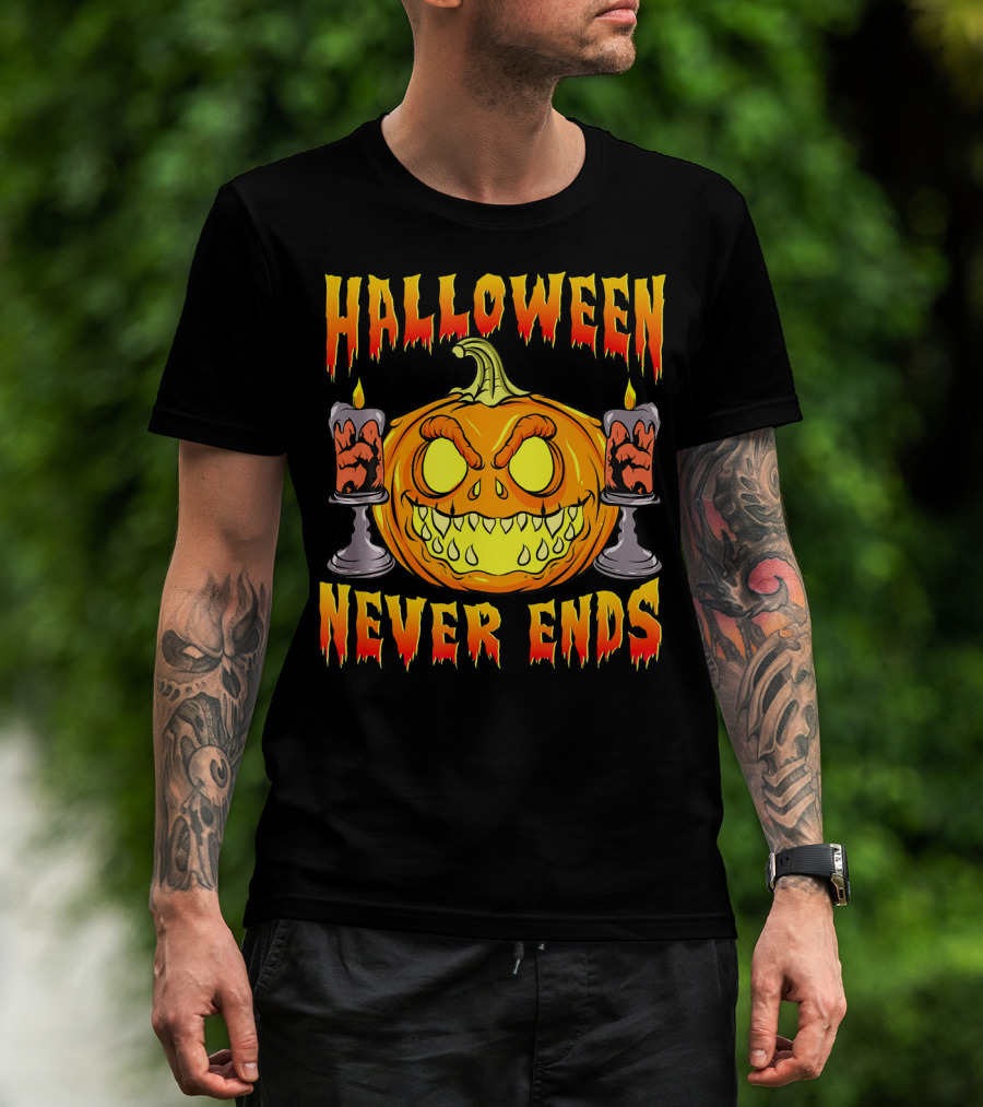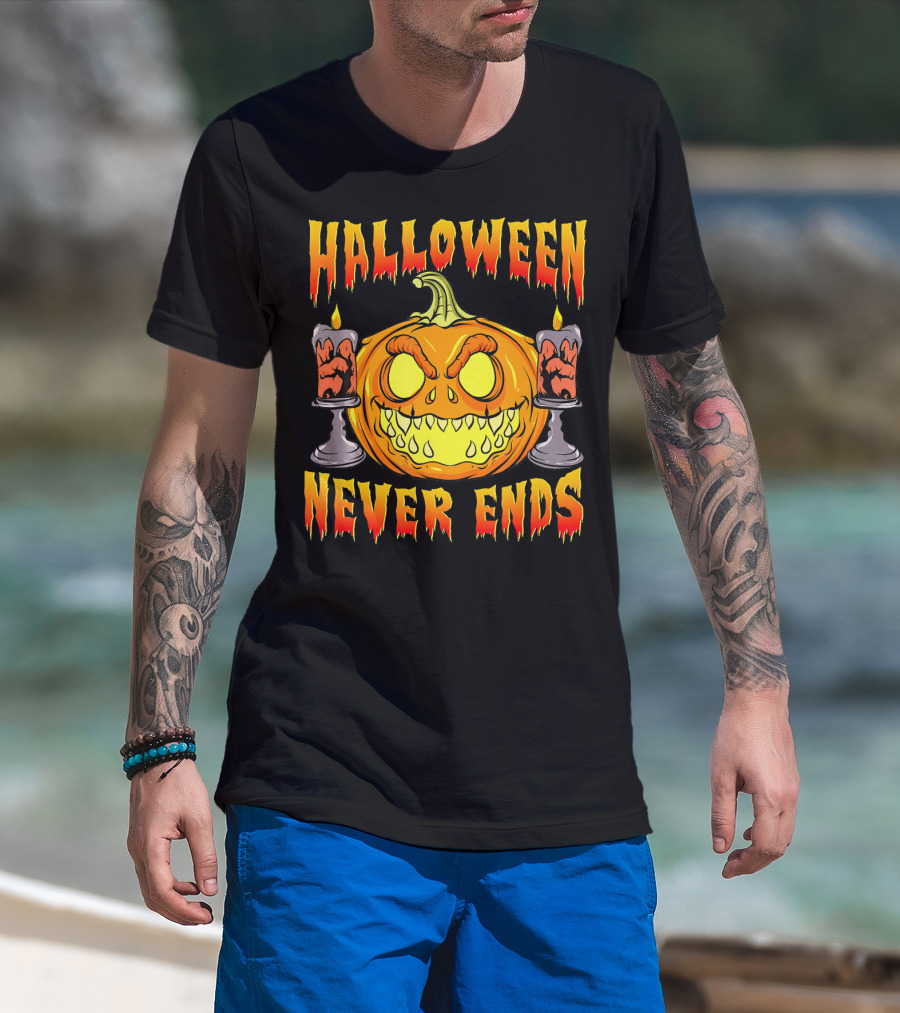 Halloween Never Ends Scary Pumpkin With Spooky Candles T-Shirt