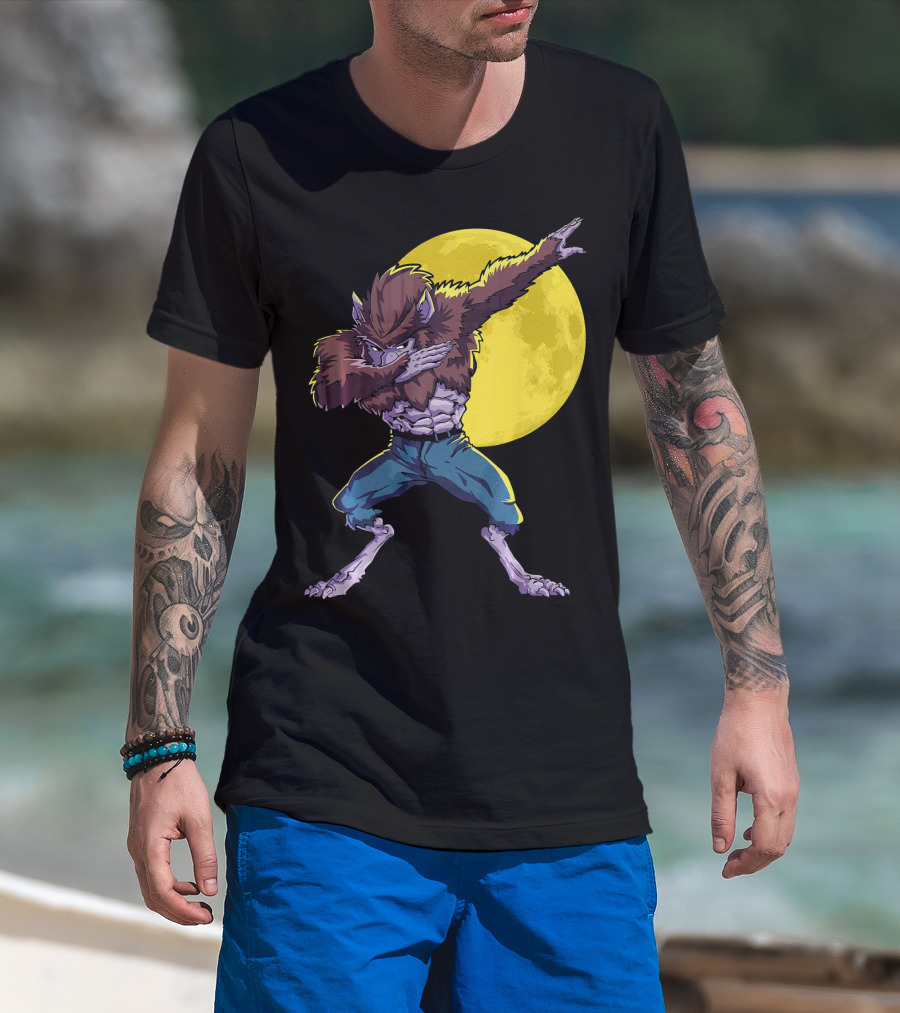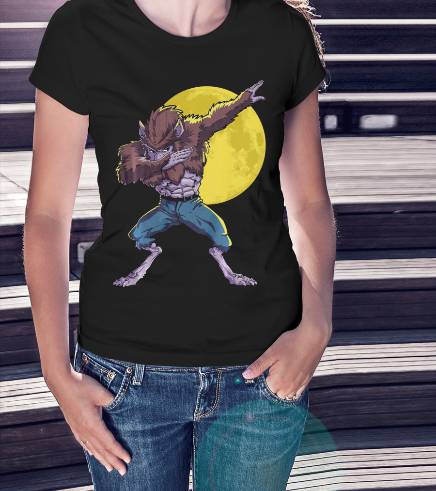 Werewolf Dabbing Halloween Funny Zombie Full Moon T-Shirt