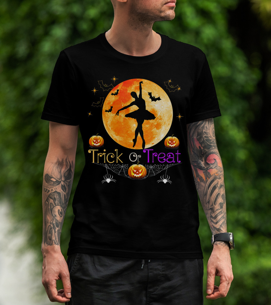 Trick Or Treat Ballerina Halloween Moon Pumpkins Bats Spiders T-Shirt