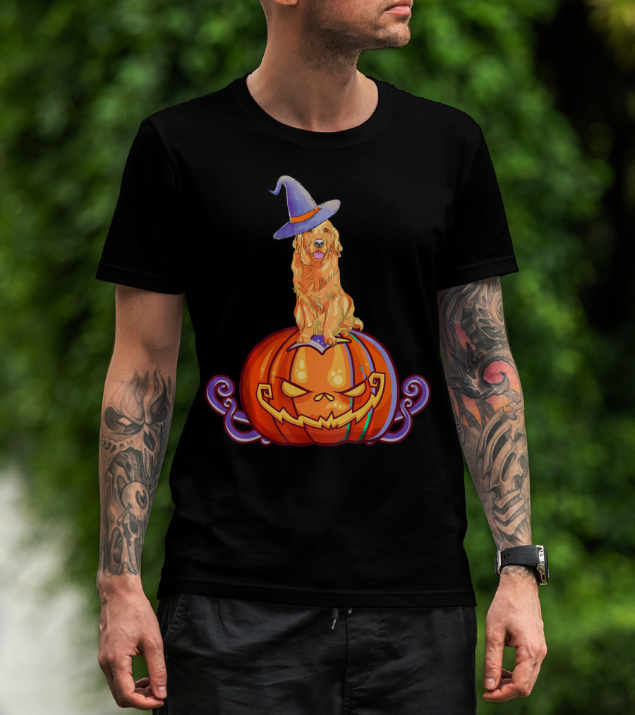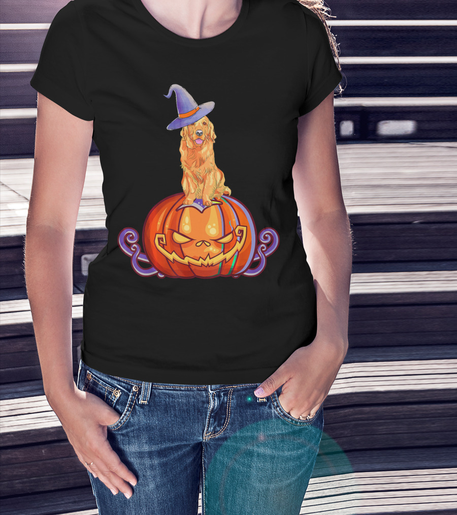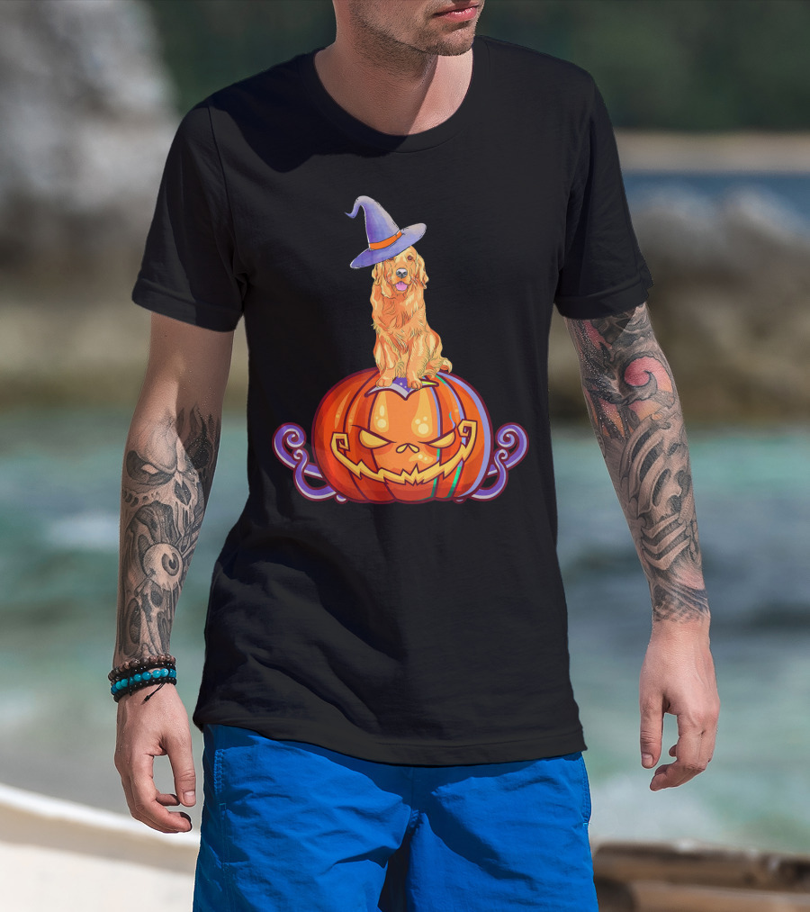Golden Retriever Halloween Pumpkin Witch Hat T-Shirt