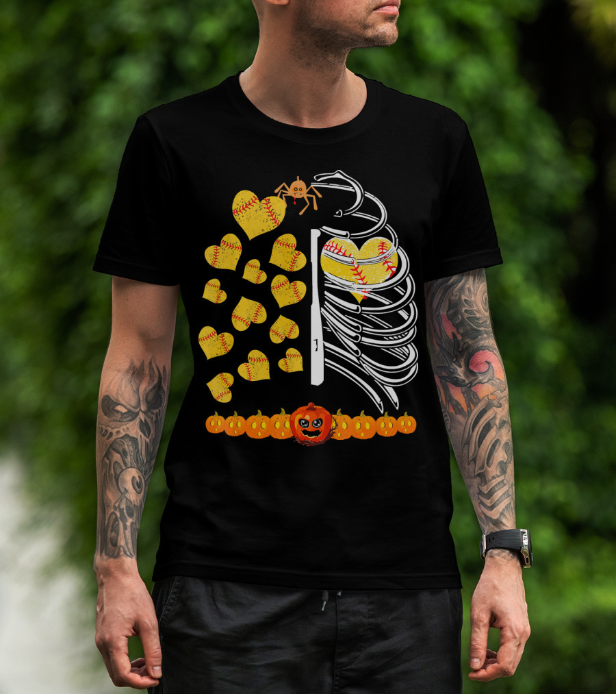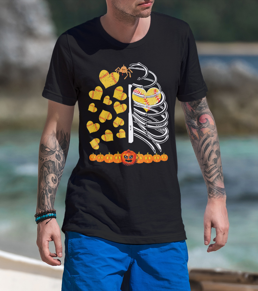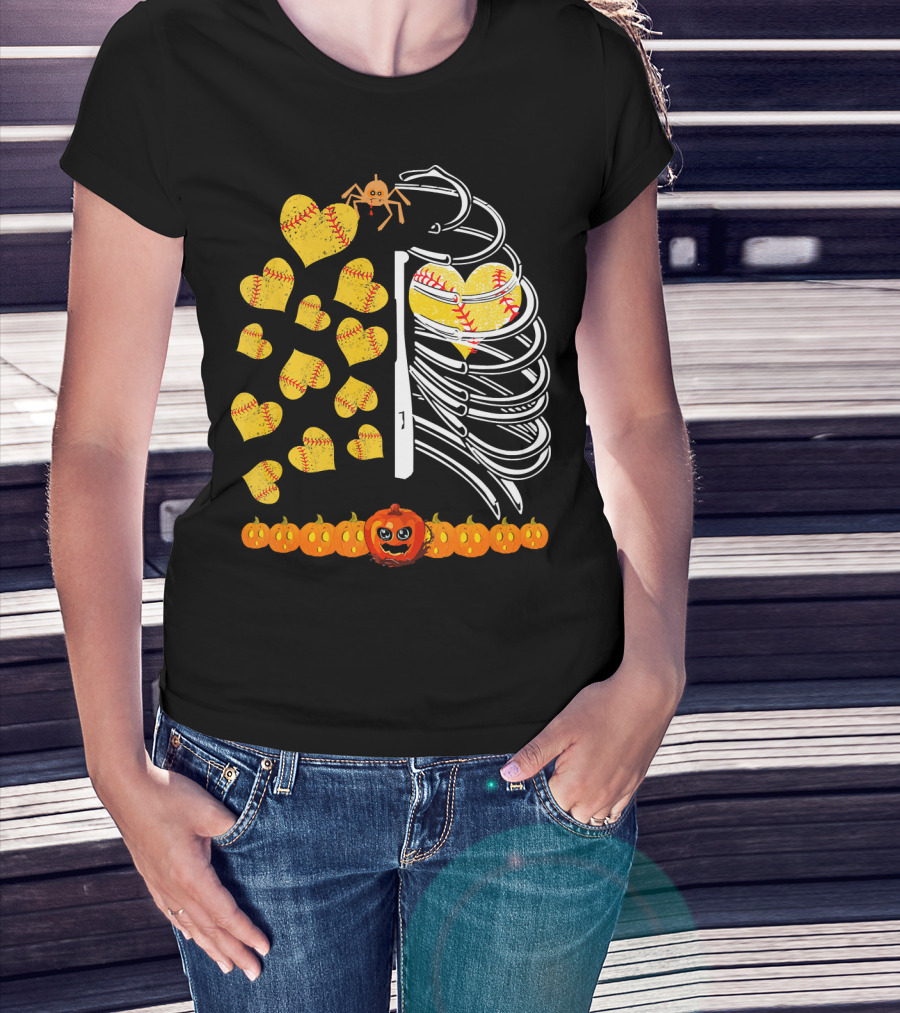 Funny Halloween Skeleton Softball Hearts Pumpkins Spider T-Shirt
