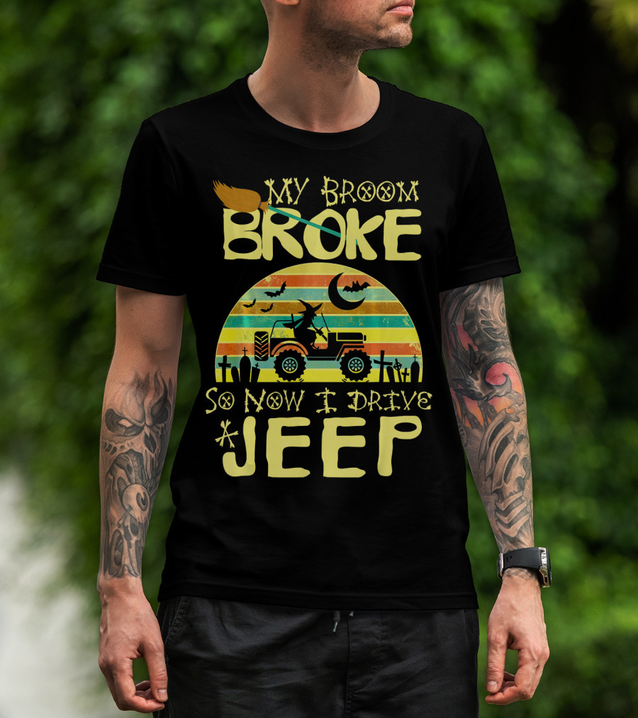 My Broom Broke So Now I Drive A Jeep Halloween Sunset Jeep Witch Vintage T-Shirt