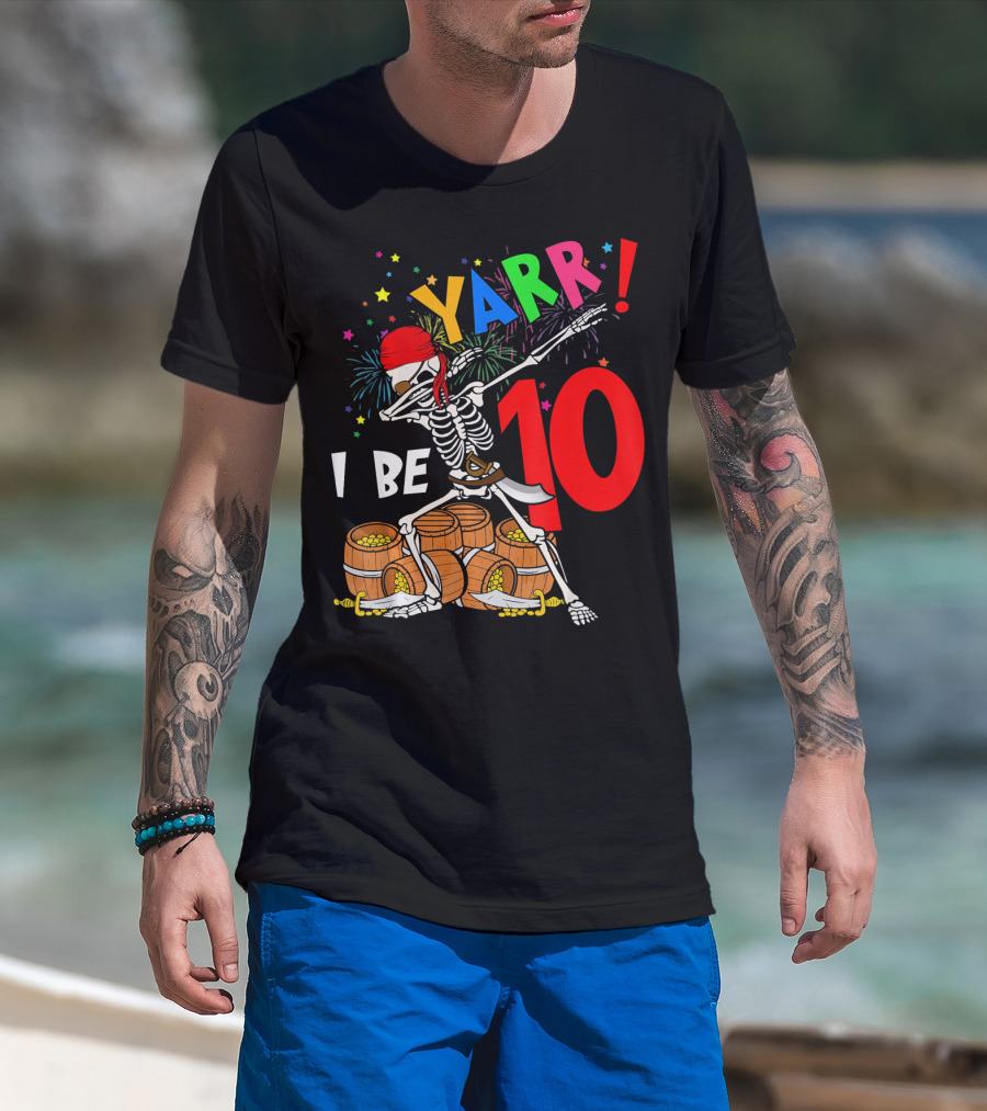 Yarr I Be 10 Dabbing Skeleton With Pirate Treasure And Fireworks Birthday T-Shirt