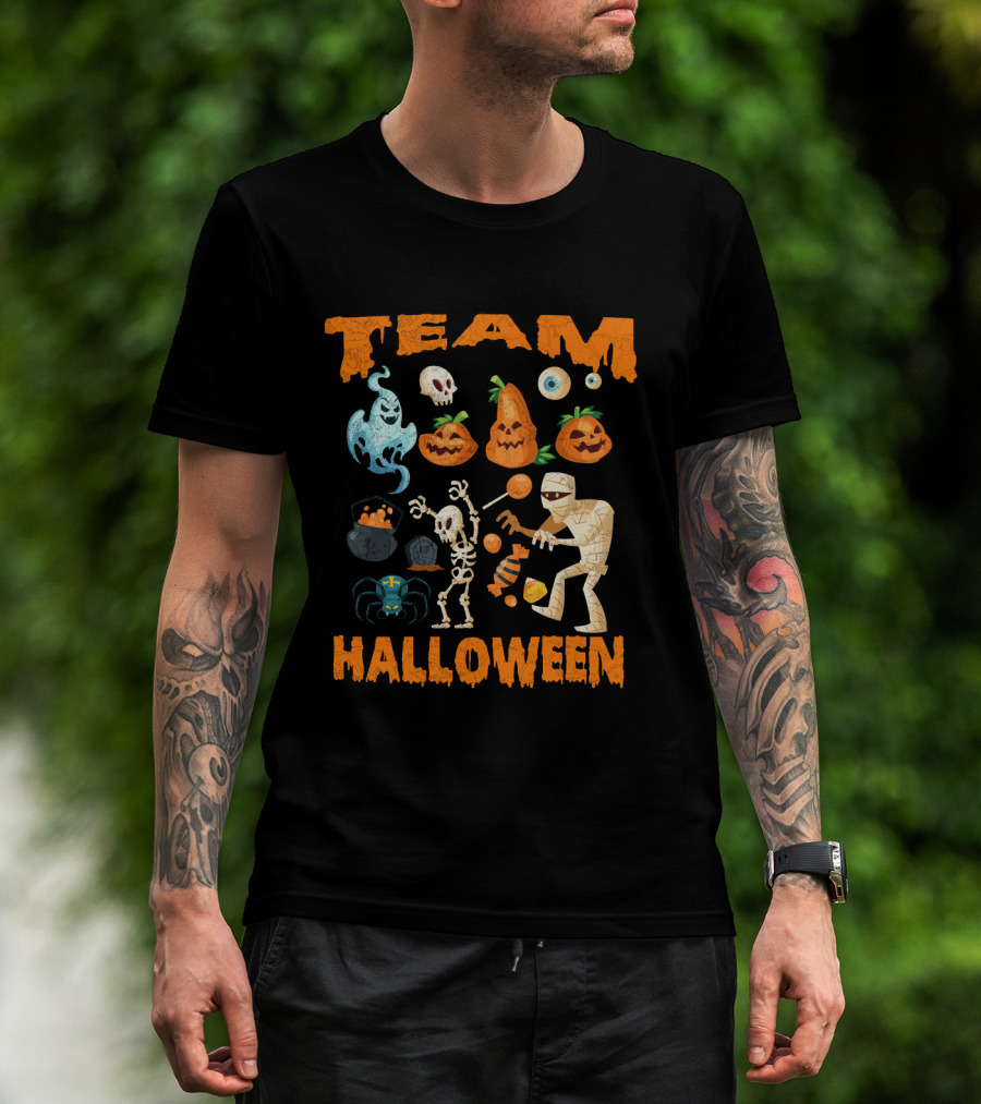 Team Halloween Ghost Skull Skeleton Pumpkins Mummy Spider T-Shirt