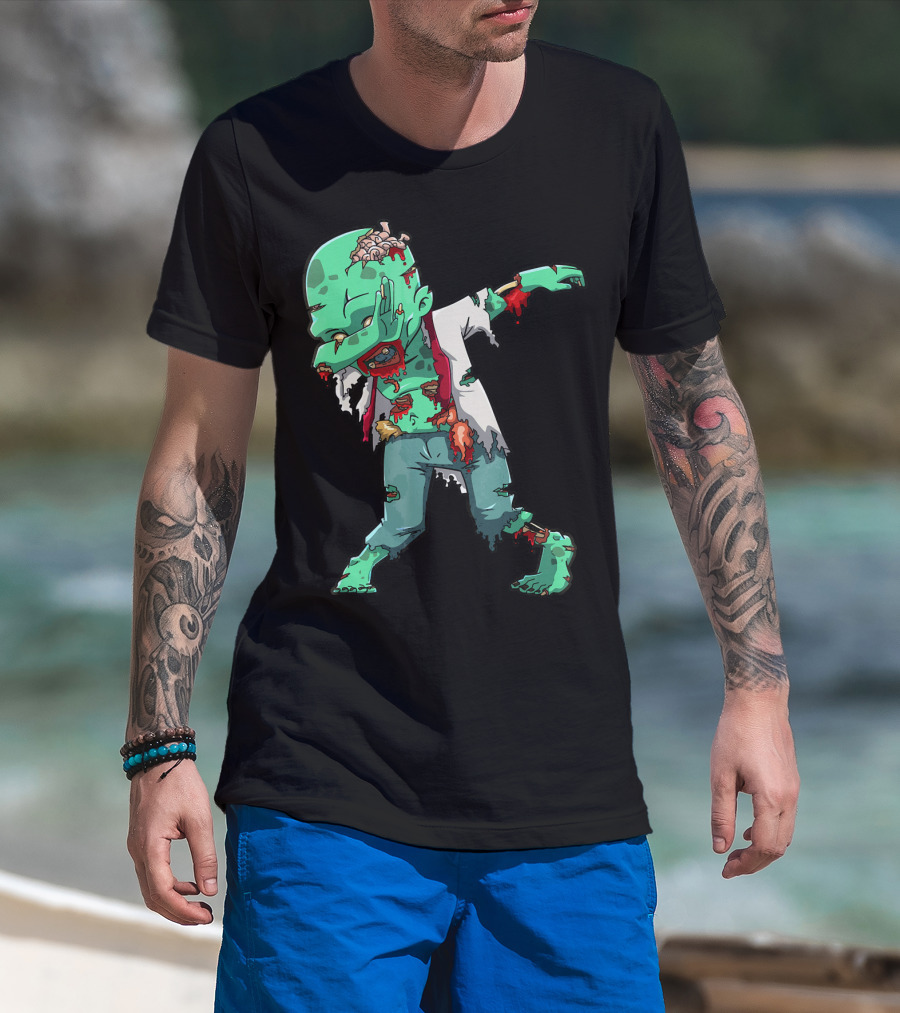 The Zombie Halloween Dabbing Dab Cos T-shirt is designed for everyday wear and a consistent fit. Fabric is pre-shrunk ring-spun cotton with durable stitching. See the size chart below for exact measurements.