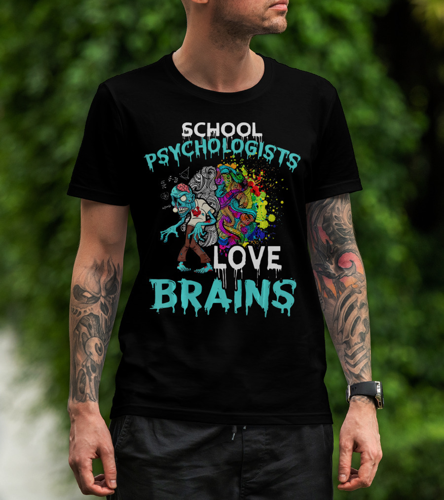 School Psychologists Love Brains Zombie Psychedelic Colors T-Shirt