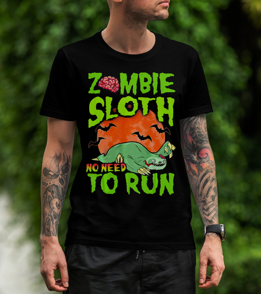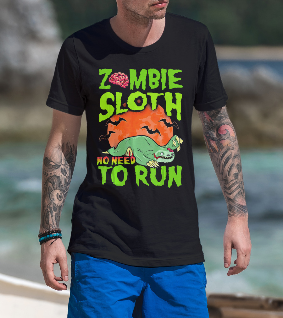 Zombie Sloth No Need To Run Halloween Brain Bats T-Shirt