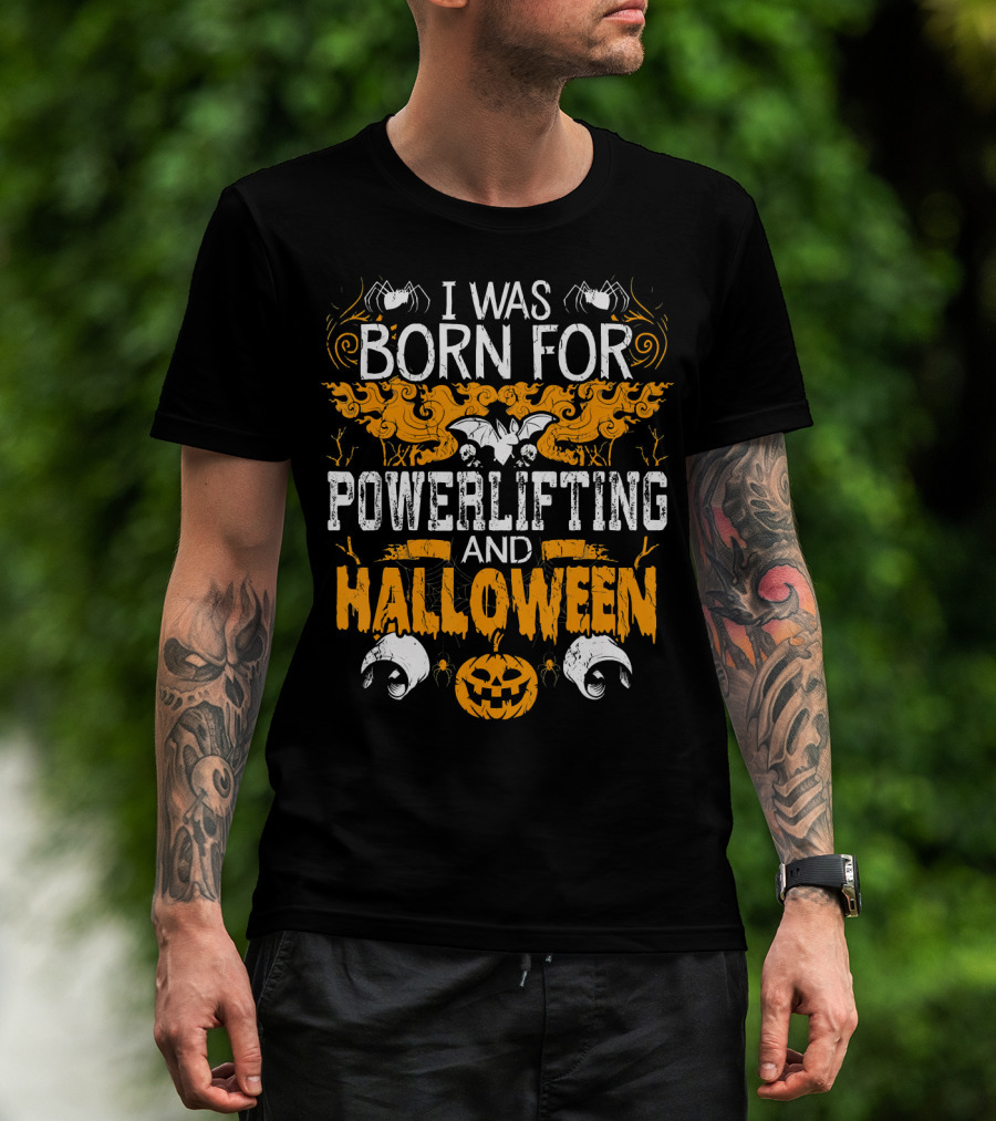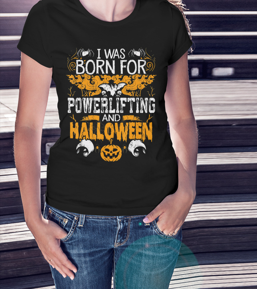 I Was Born For Powerlifting And Halloween With Spiders And Pumpkin T-Shirt