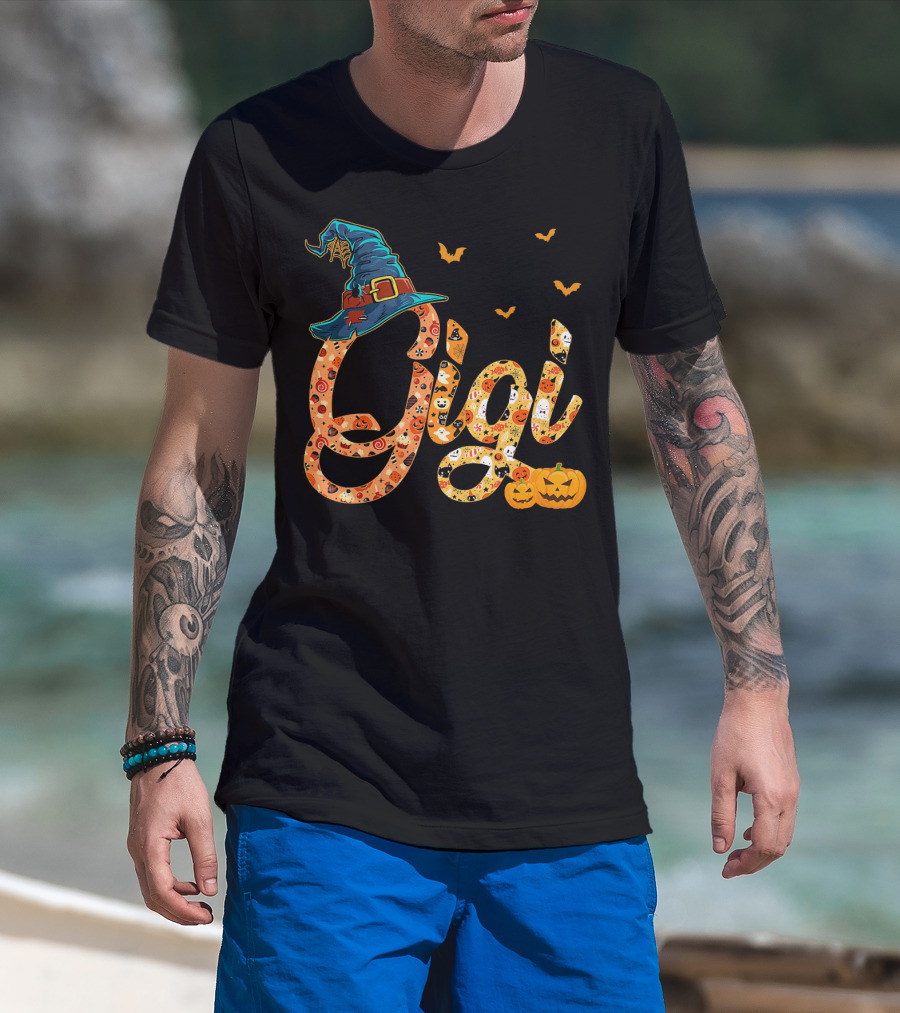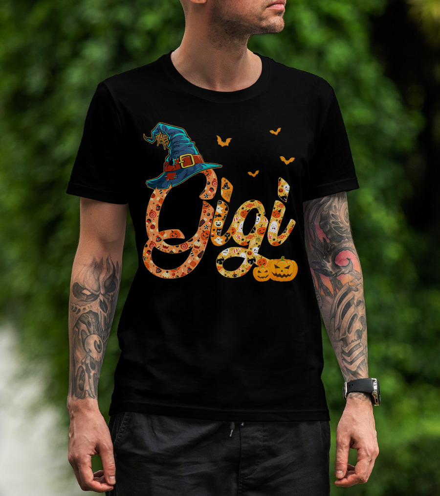 Gigi Funny Halloween Witch Hat Pumpkins Bats T-Shirt