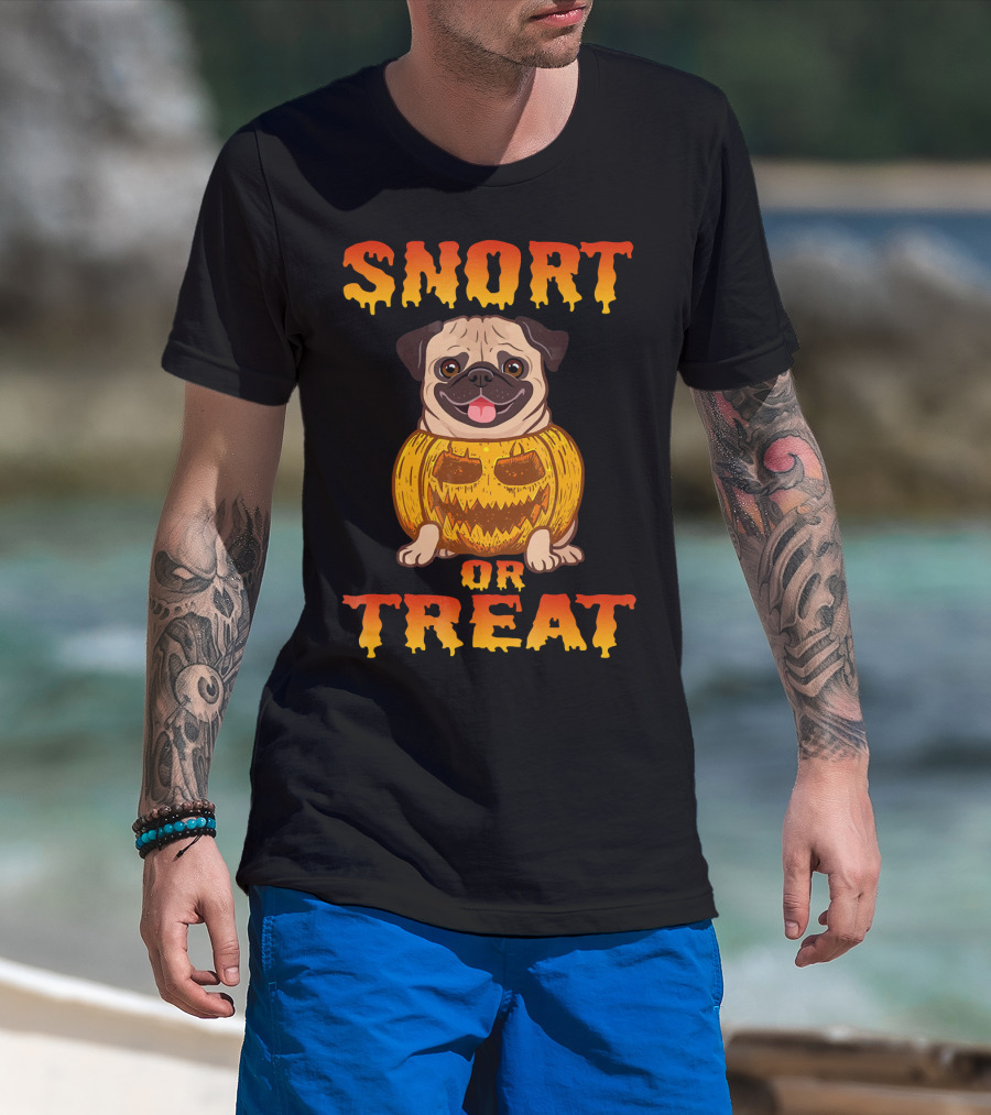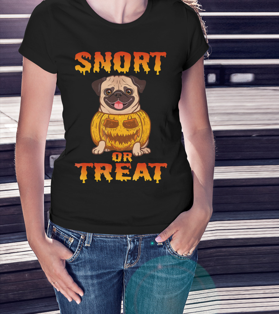 Snort Or Treat Funny Pug Pumpkin Halloween T-Shirt