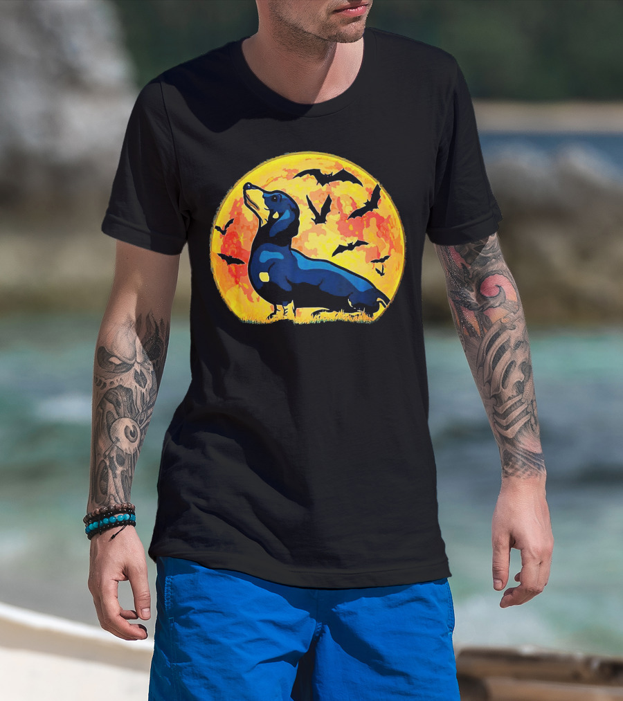 Dachshund Halloween Moon With Flying Bats T-Shirt