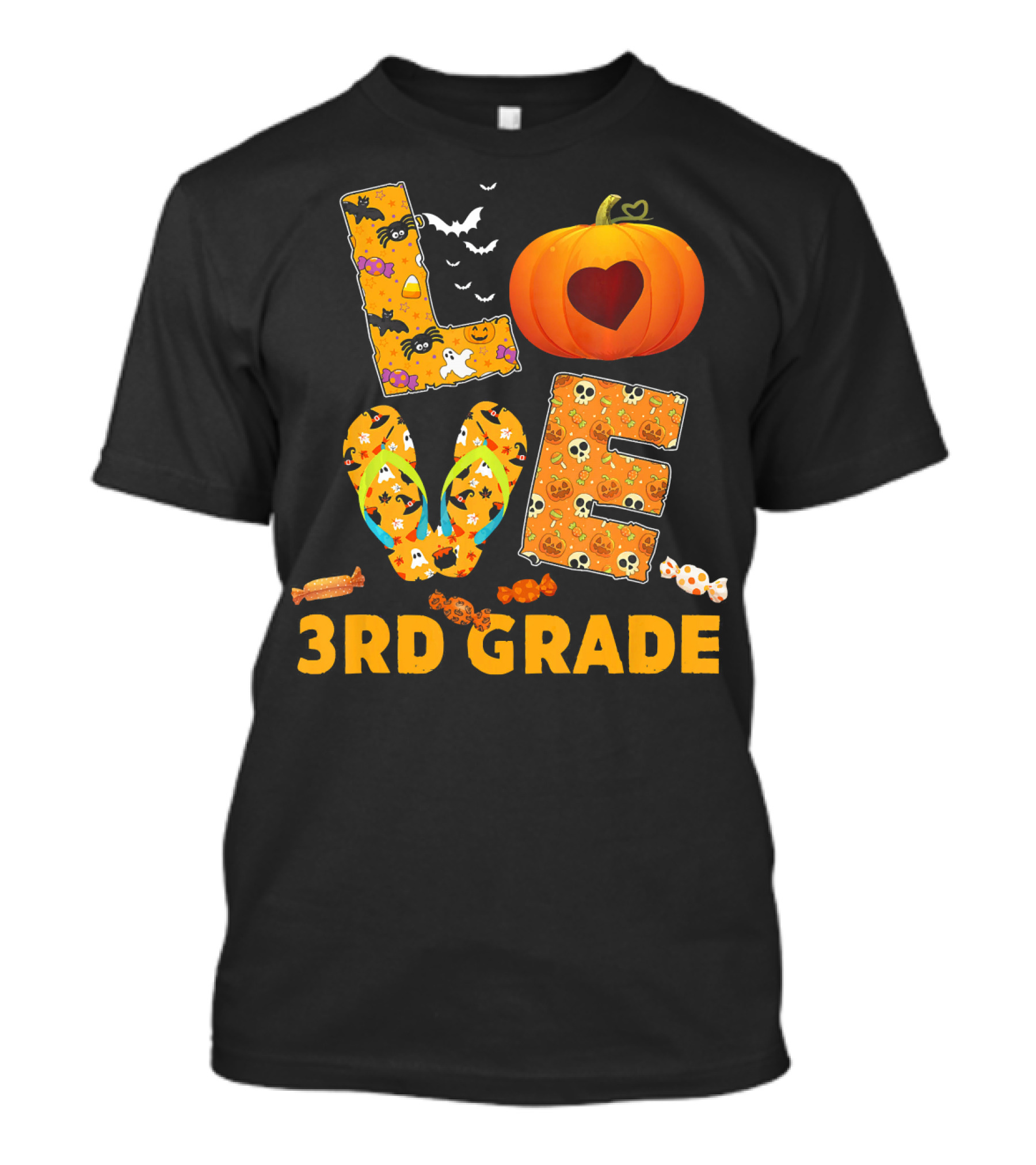 Love 3rd Grade Halloween Pumpkin Teacher T-Shirt