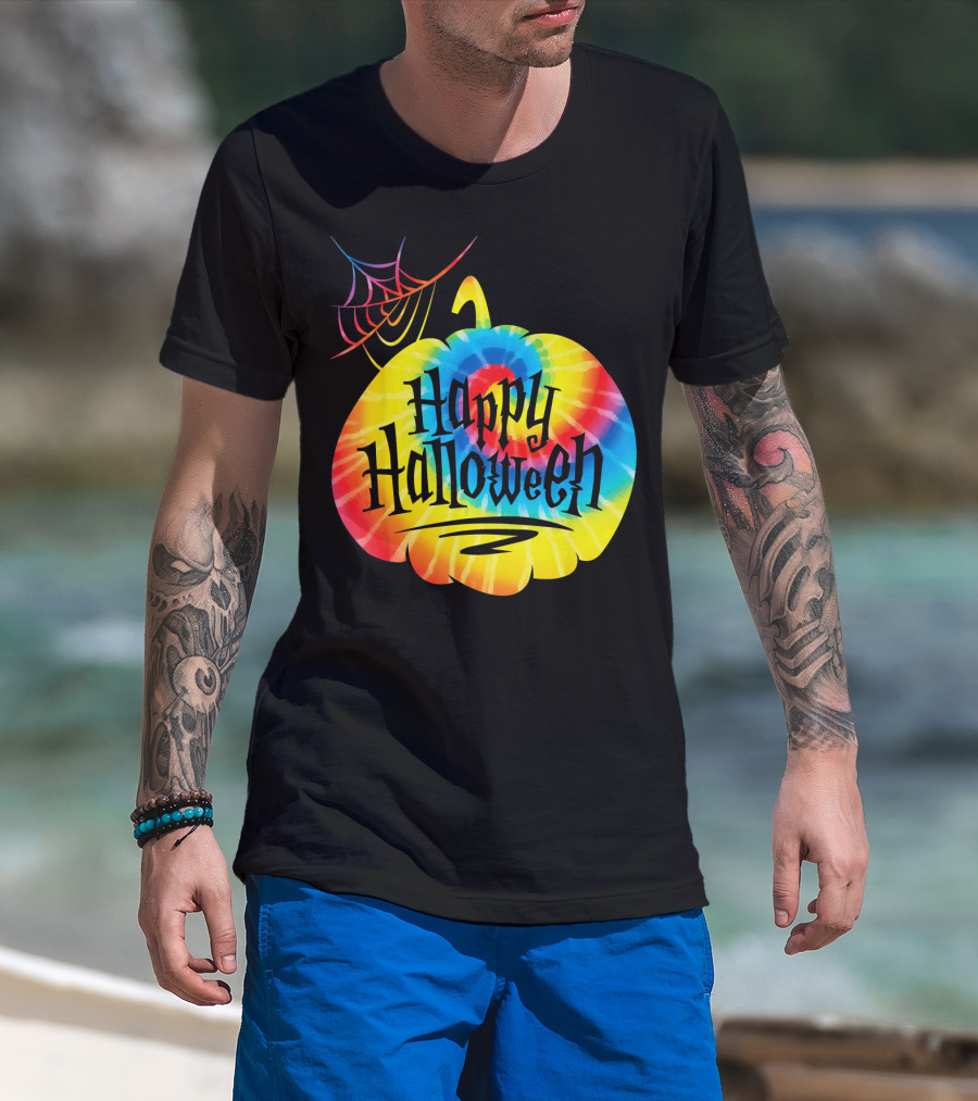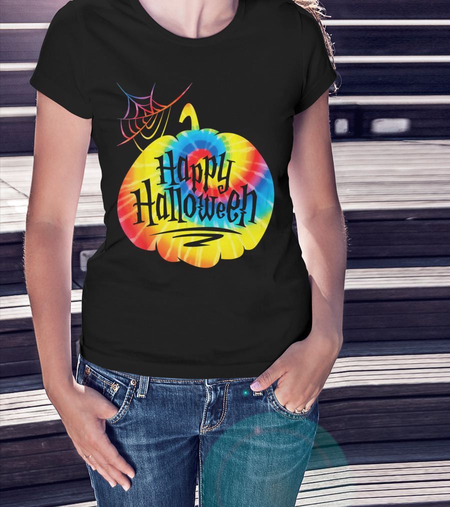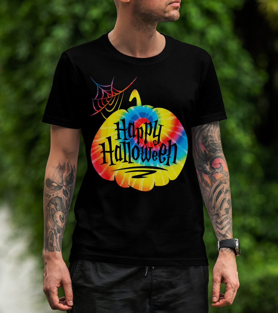 Tie Dye Pumpkin Happy Halloween Spiderweb T-Shirt