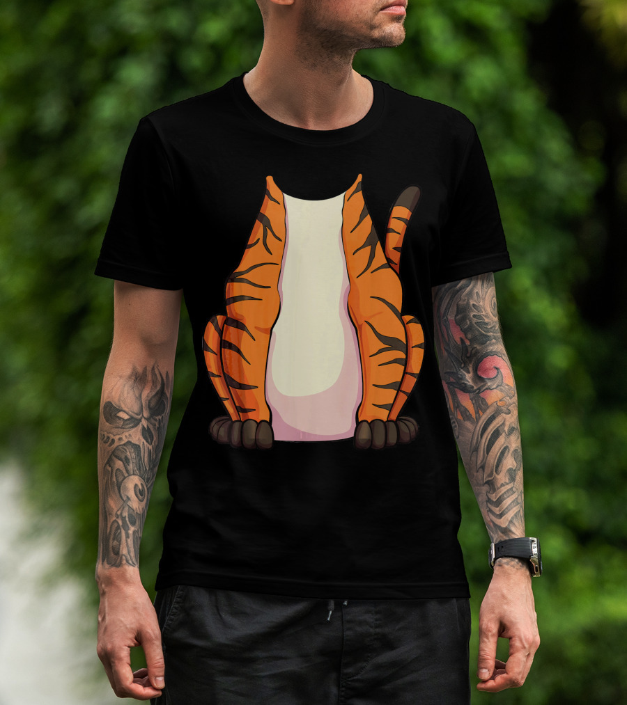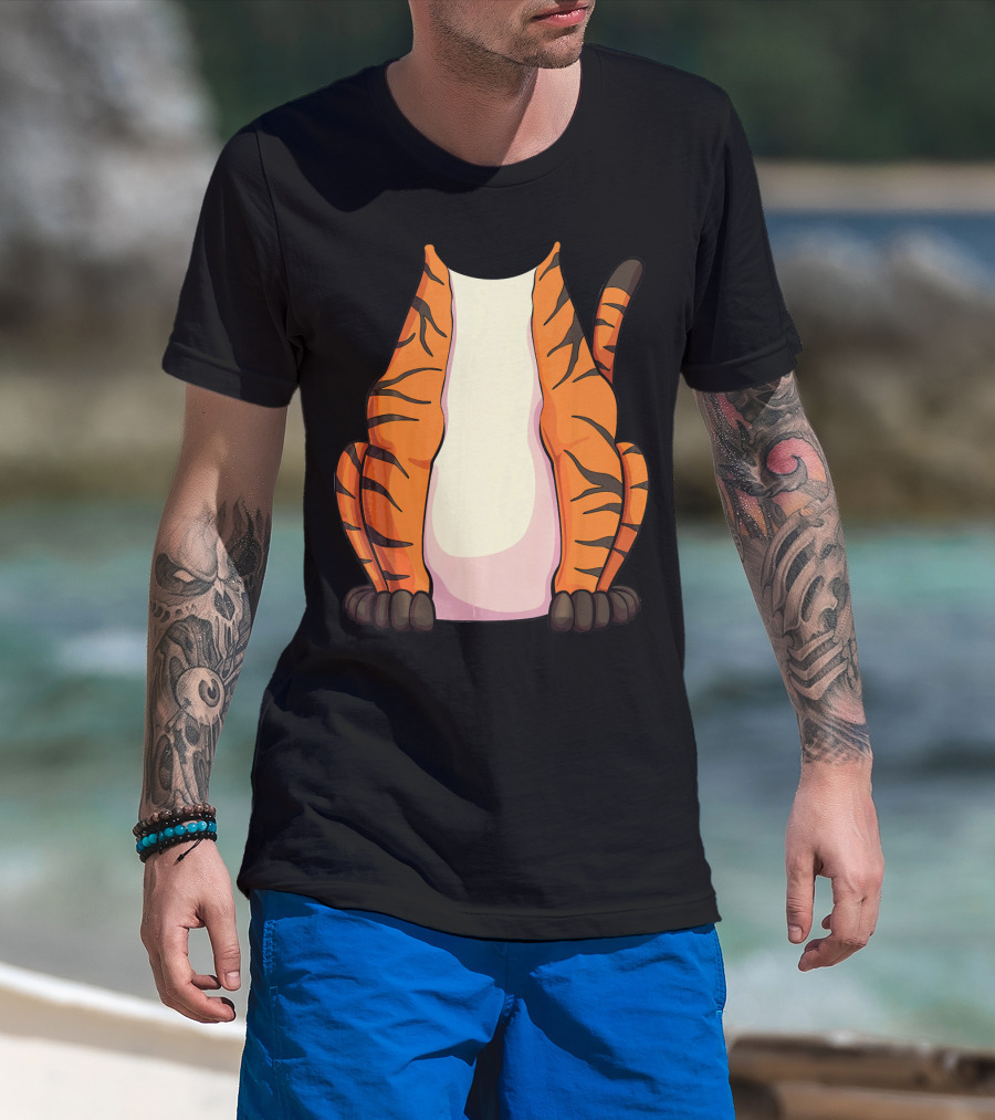 The Tiger Costume for Halloween Tiger Stripes Tail T-shirt is designed for everyday wear and a consistent fit. Fabric is pre-shrunk ring-spun cotton with durable stitching. See the size chart below for exact measurements.