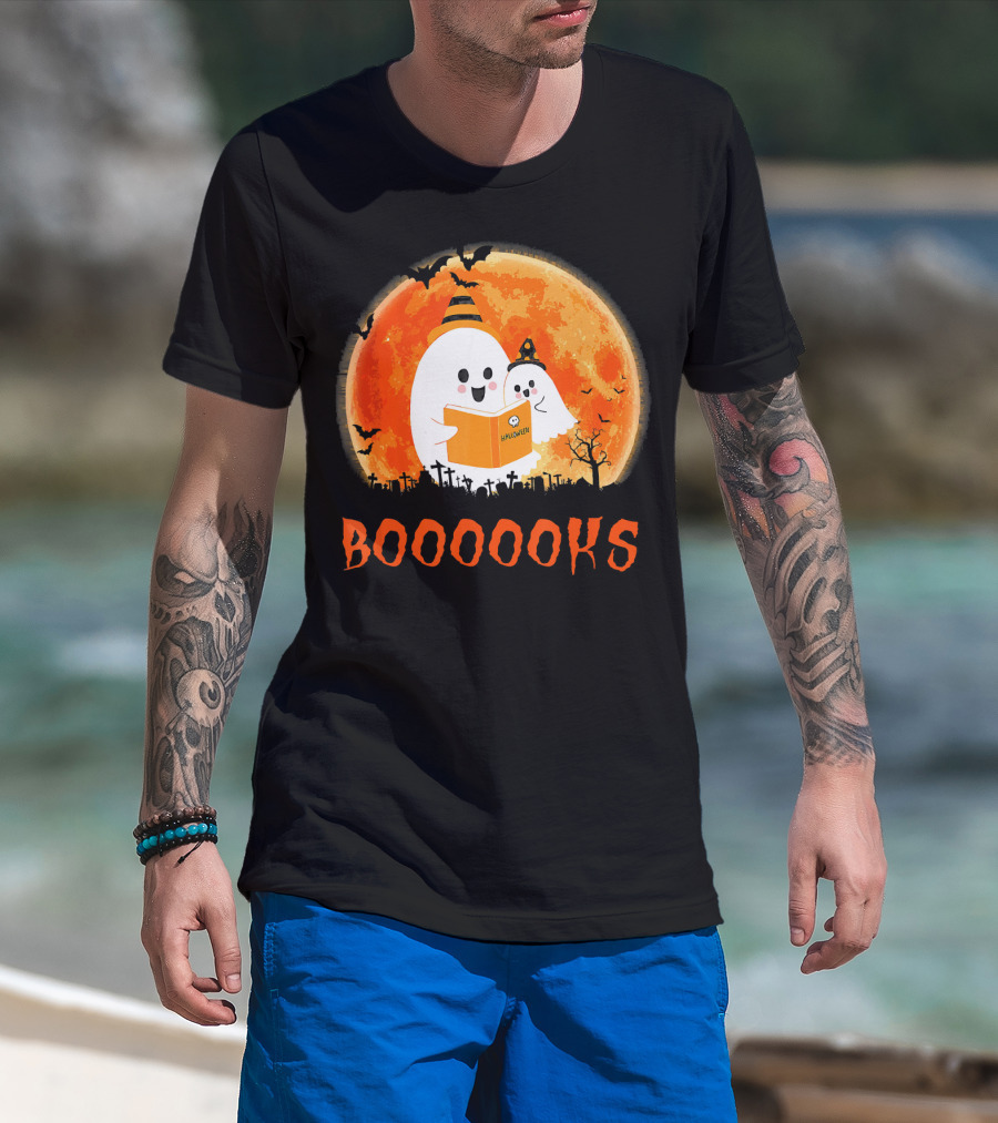 Halloween Ghosts Reading Booooooks With Funny Teacher T-Shirt