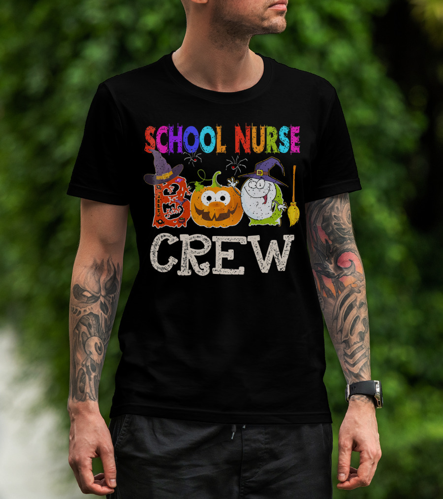 The School Nurse Boo Crew Halloween Pumpkin Ghost Witches Hat Broom T-shirt is designed for everyday wear and a consistent fit. Fabric is pre-shrunk ring-spun cotton with durable stitching. See the size chart below for exact measurements.