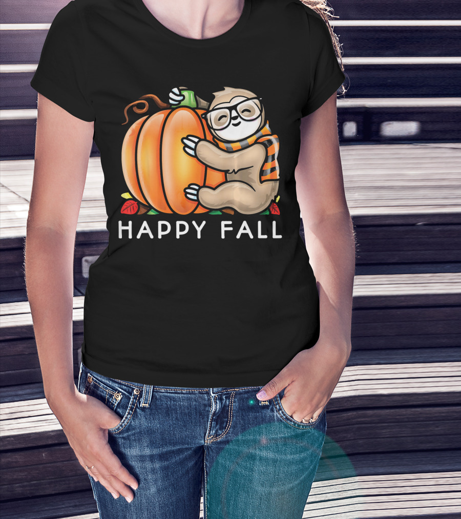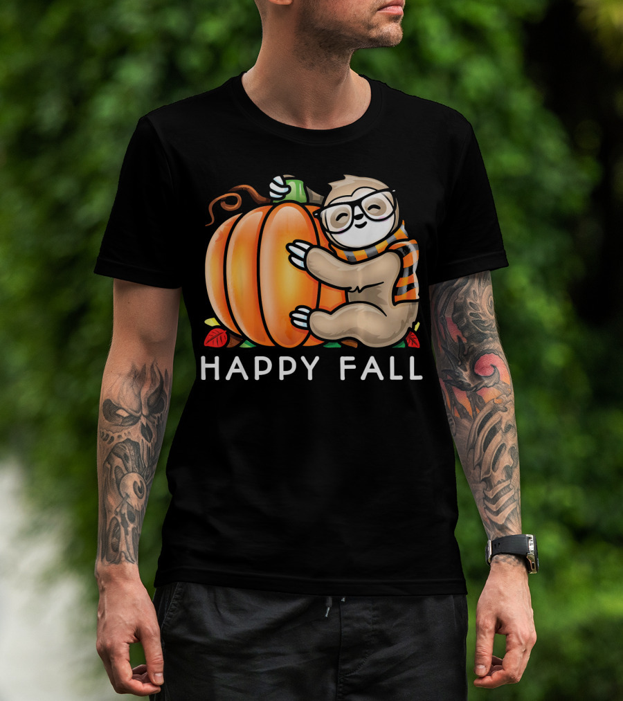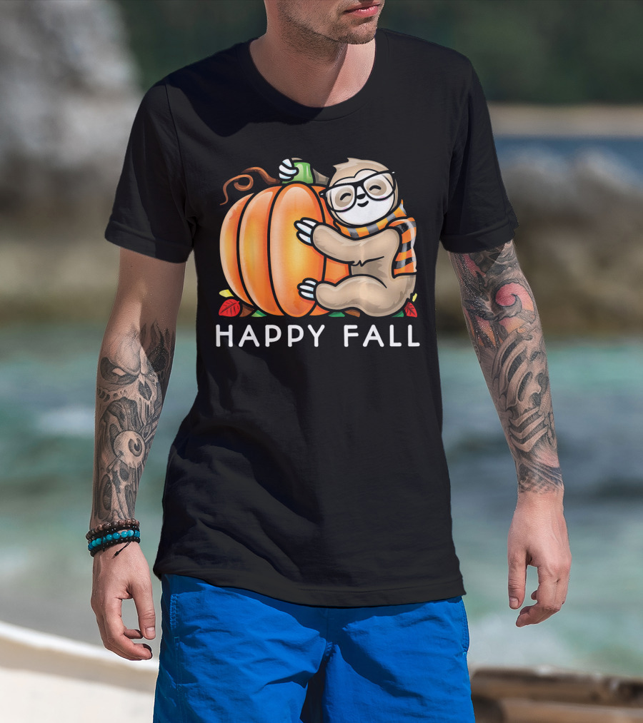 Happy Fall Cute Sloth Glasses Scarf Pumpkin Hug T-Shirt
