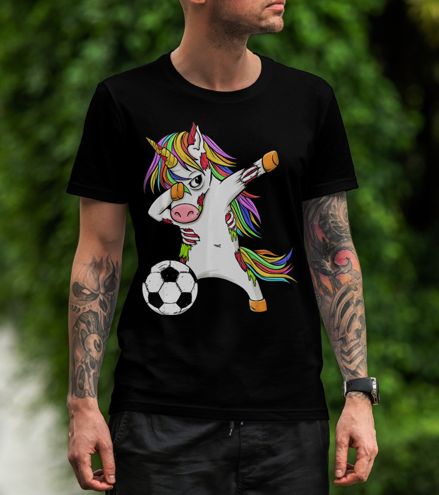 Zombie Unicorn Dabbing Halloween Soccer Ball T-Shirt