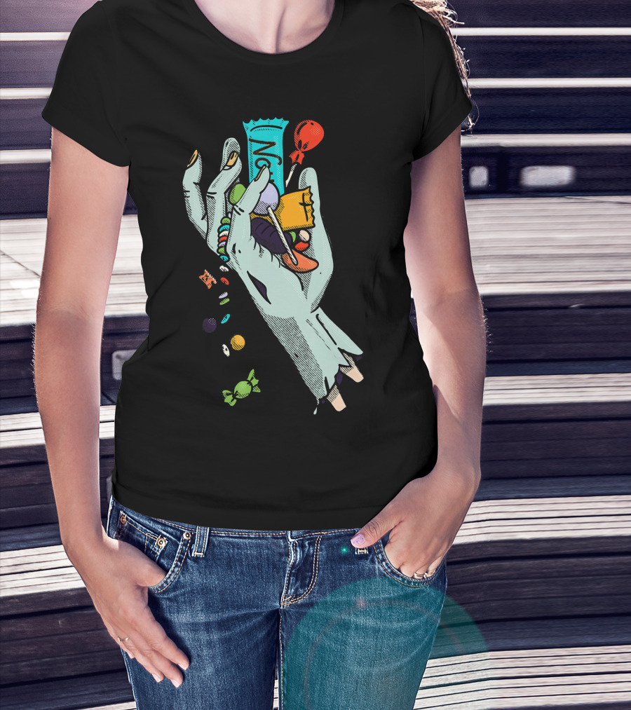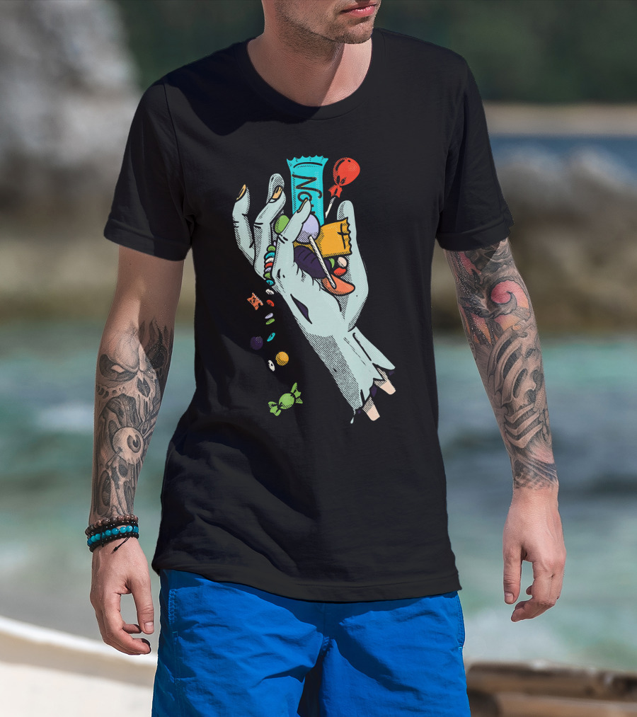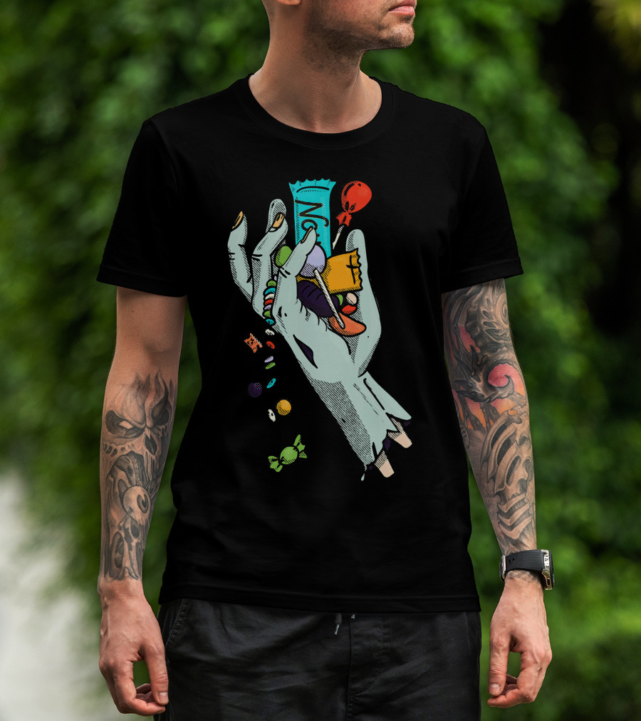 Holidaze Trick Or Treat Zombie Hand No Treats Candies Balloon T-Shirt