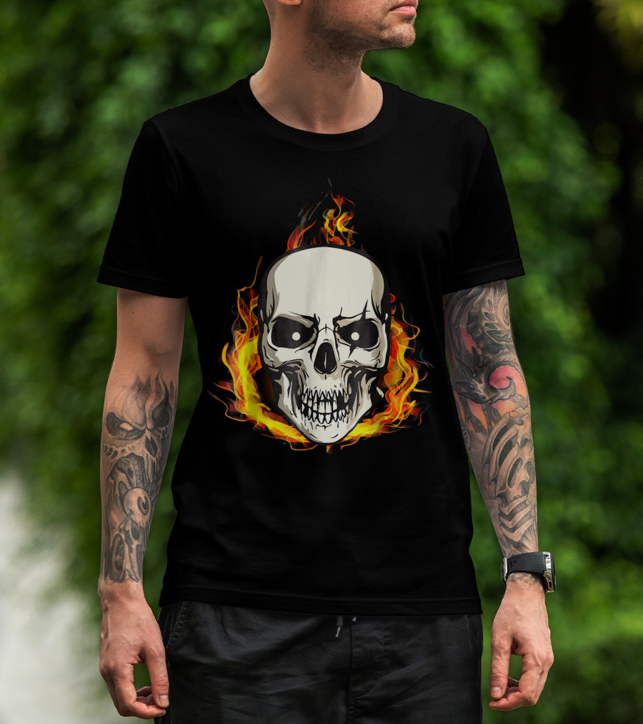 FLAMING SKULL INFERNO SKULL T-Shirt
