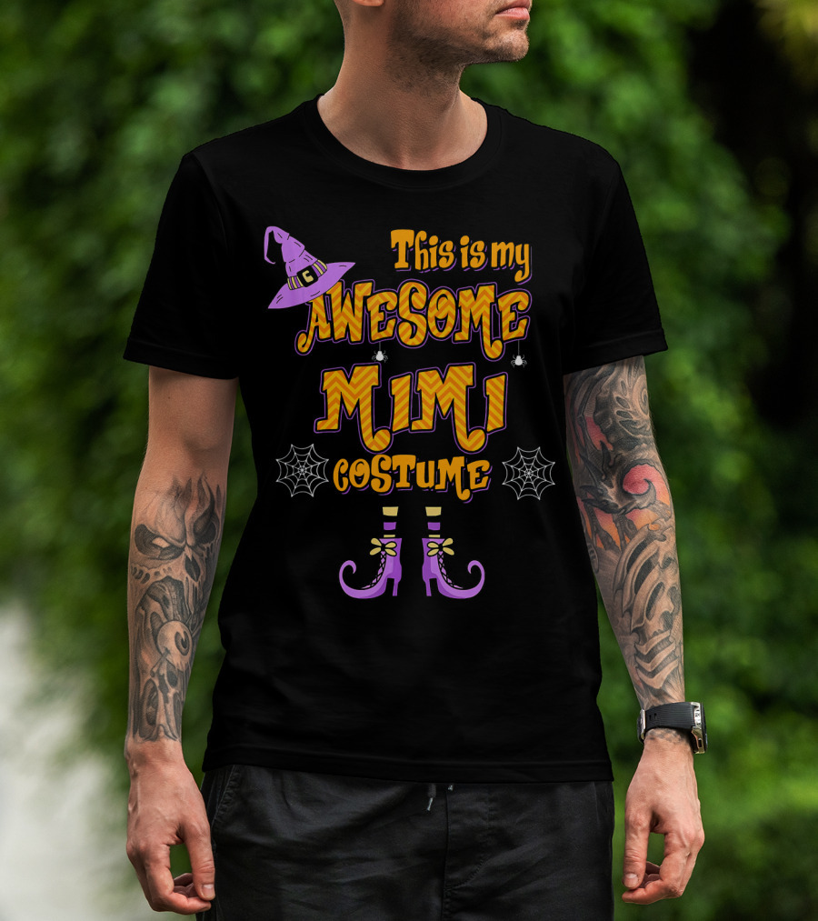 This Is My Awesome Mimi Halloween Costume Witch Hat Spider Webs Boots T-Shirt