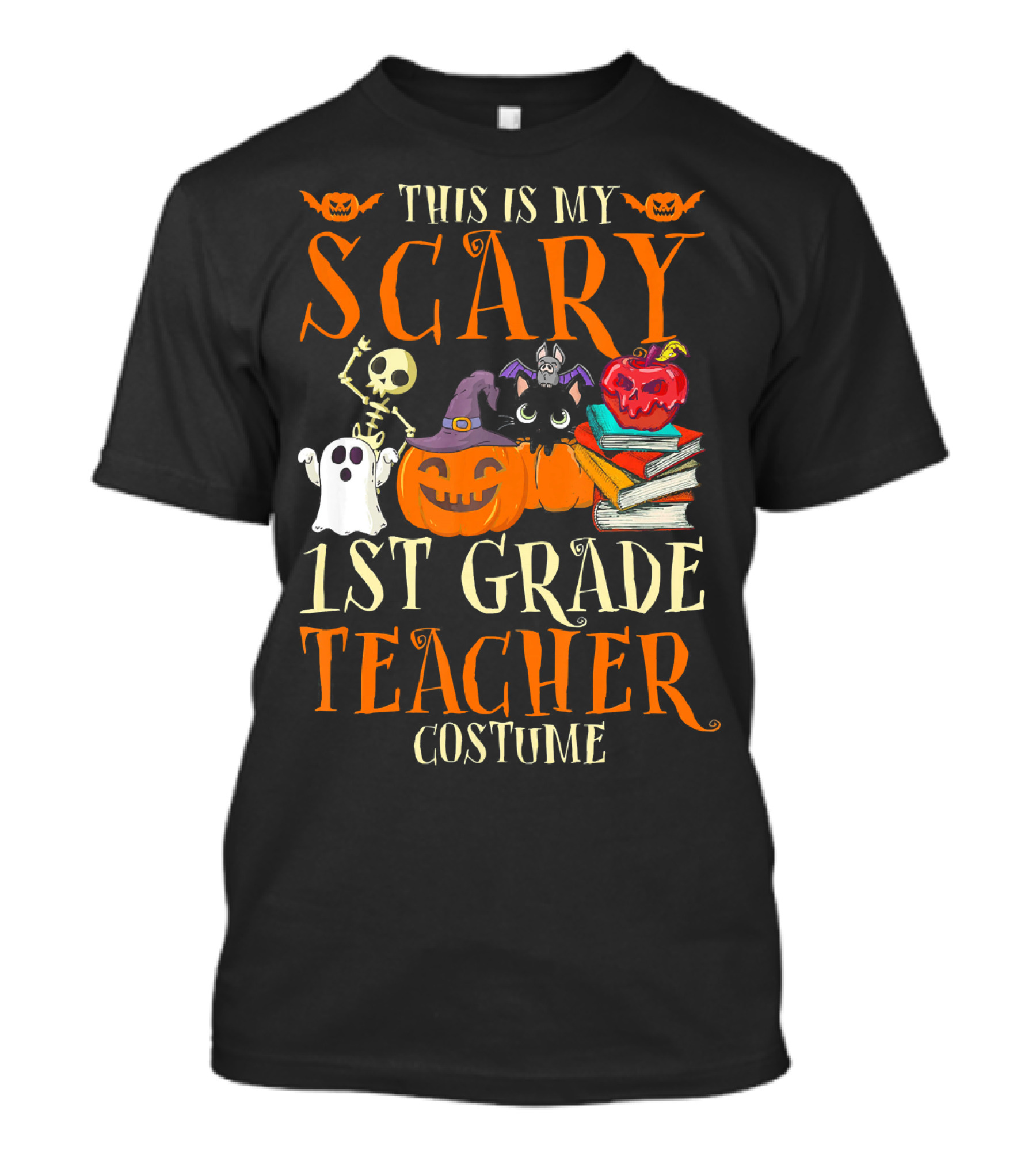 THIS IS MY SCARY 1ST GRADE TEACHER COSTUME HALLOWEEN GHOST PUMPKIN SKULL BOOKS BAT APPLE T-Shirt