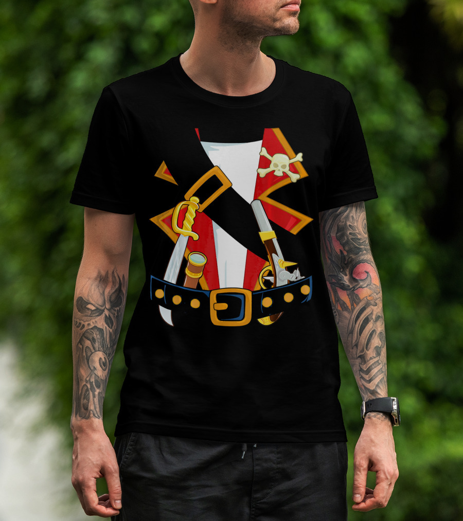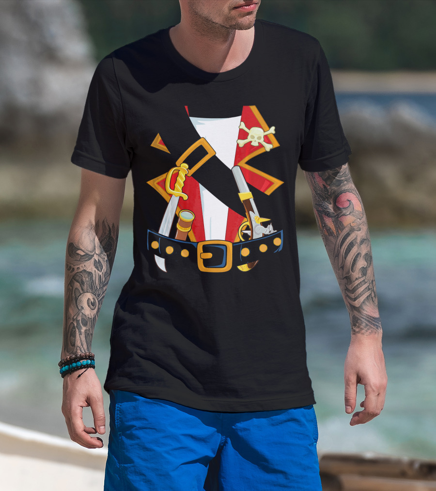 Pirate Costume Skull Crossbones Sword Pistol Belt T-Shirt