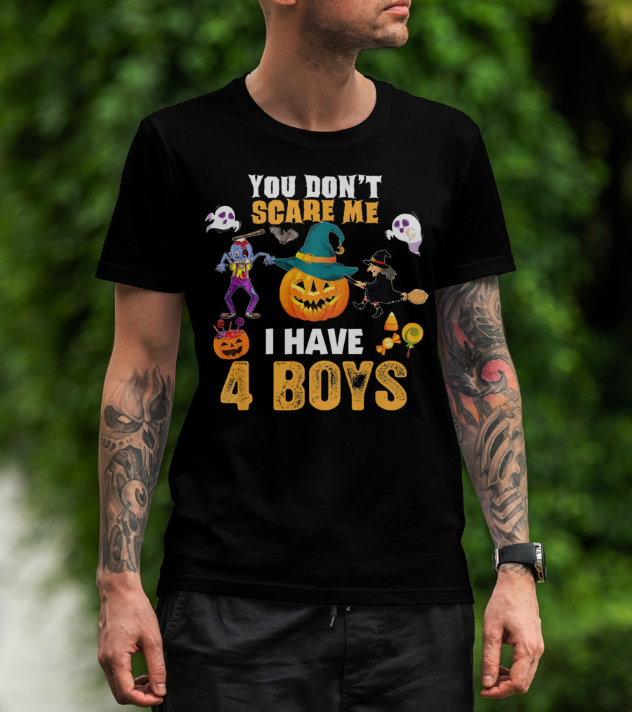 YOU DON'T SCARE ME I HAVE 4 BOYS HALLOWEEN PUMPKIN WITCH GHOST ZOMBIE T-Shirt