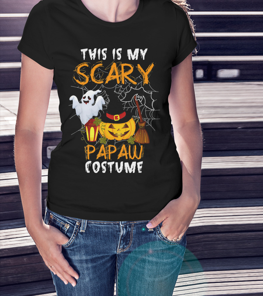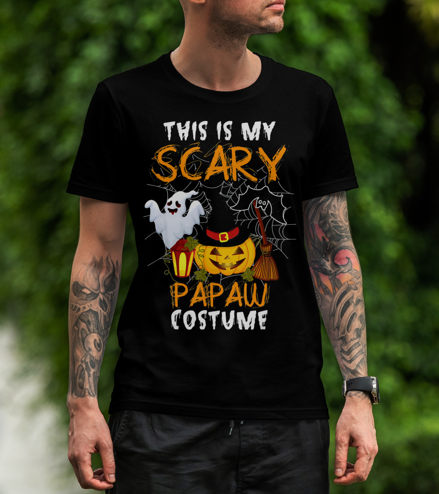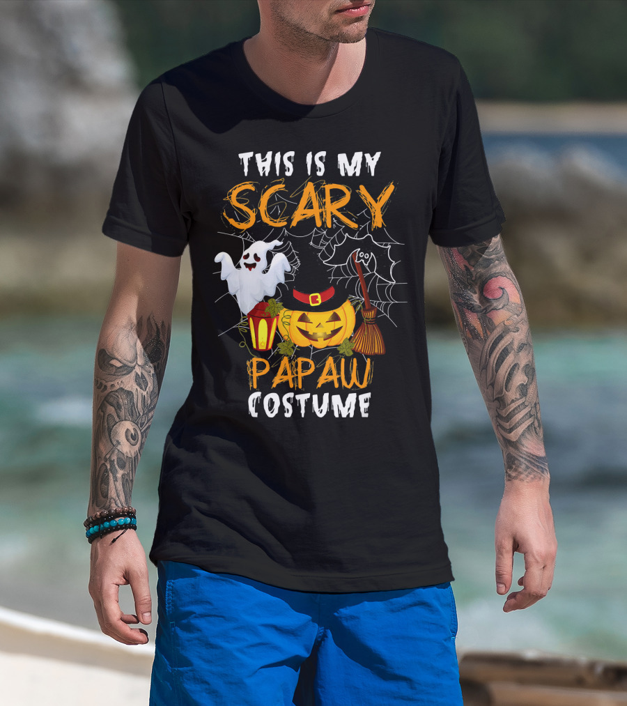 This Is My Scary Papaw Costume Ghost Pumpkin Lantern Broom Spiderweb T-Shirt
