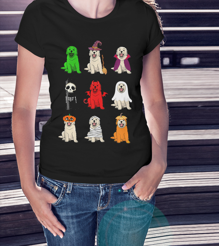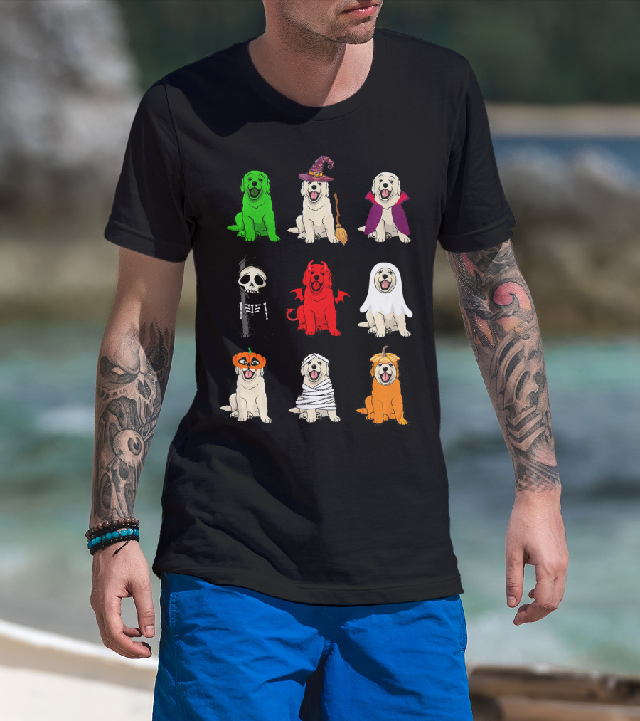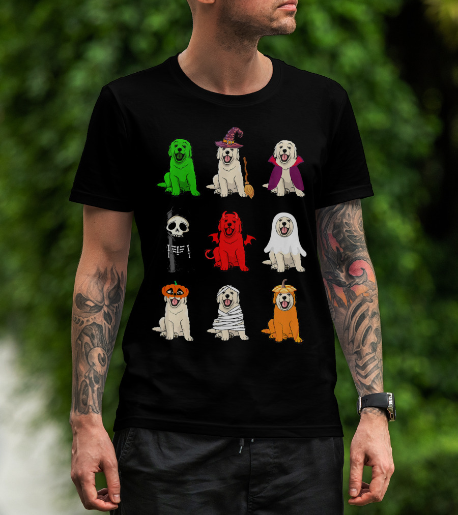 Golden Retrievers Halloween Costumes Funny Ghost Witch Pumpkin Mummy Devil Skeleton T-Shirt