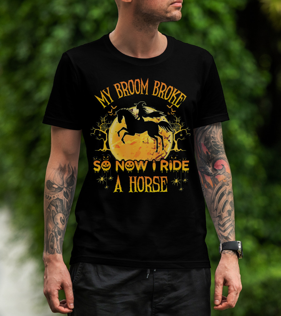 My Broom Broke So Now I Ride A Horse Halloween Witch Silhouette Moon Scene T-Shirt