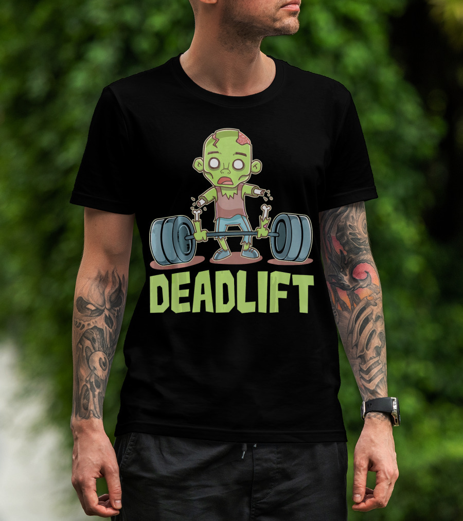 Deadlift Zombie Lifting Cartoon Undead Weightlifting T-Shirt