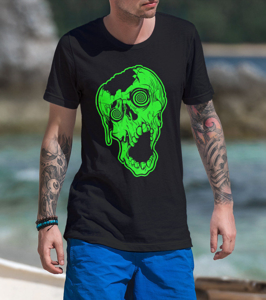 Retro Neon Zombie Skull Skateboarding Style 80s T-Shirt