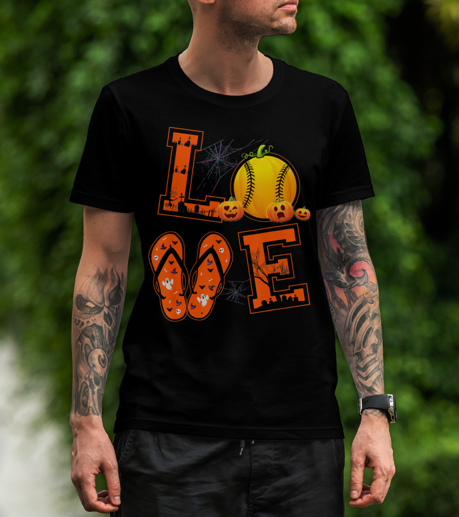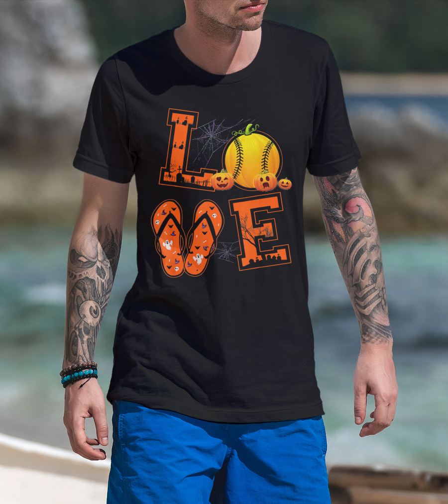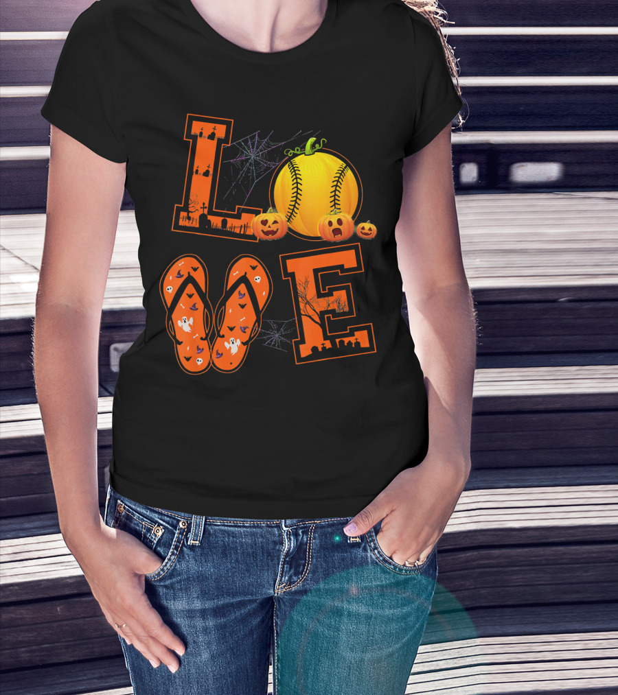 LOVE Halloween Softball Pumpkin T-Shirt