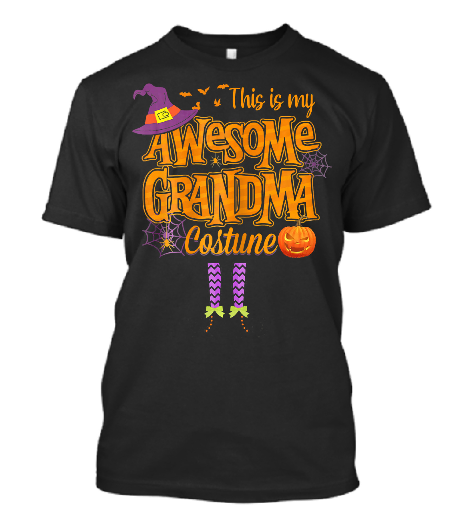 The This Is My Awesome Grandma Costume Halloween with Witch Hat and Pumpkin T-shirt is designed for everyday wear and a consistent fit. Fabric is pre-shrunk ring-spun cotton with durable stitching. See the size chart below for exact measurements.