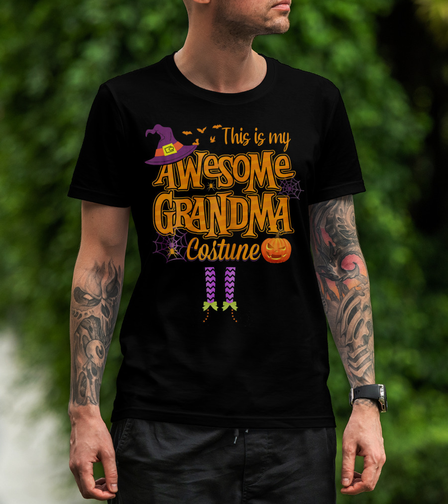 This Is My Awesome Grandma Costume Halloween With Witch Hat And Pumpkin T-Shirt