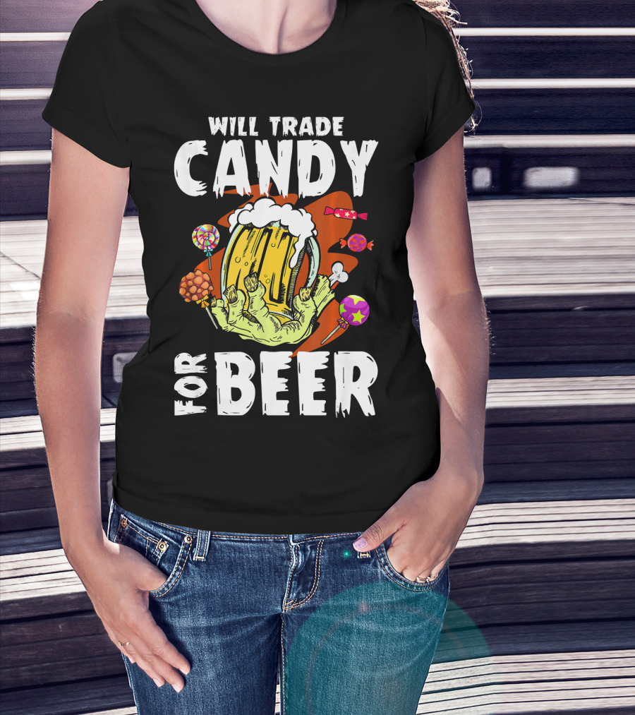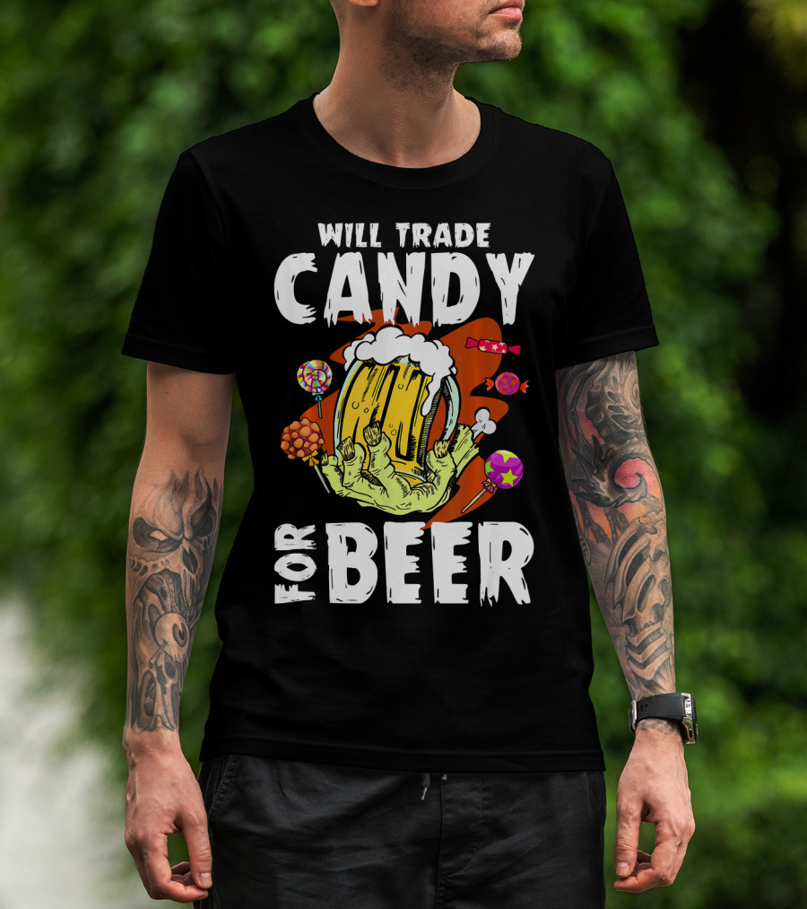 Will Trade Candy For Beer Halloween Zombie Hand Lollipops T-Shirt
