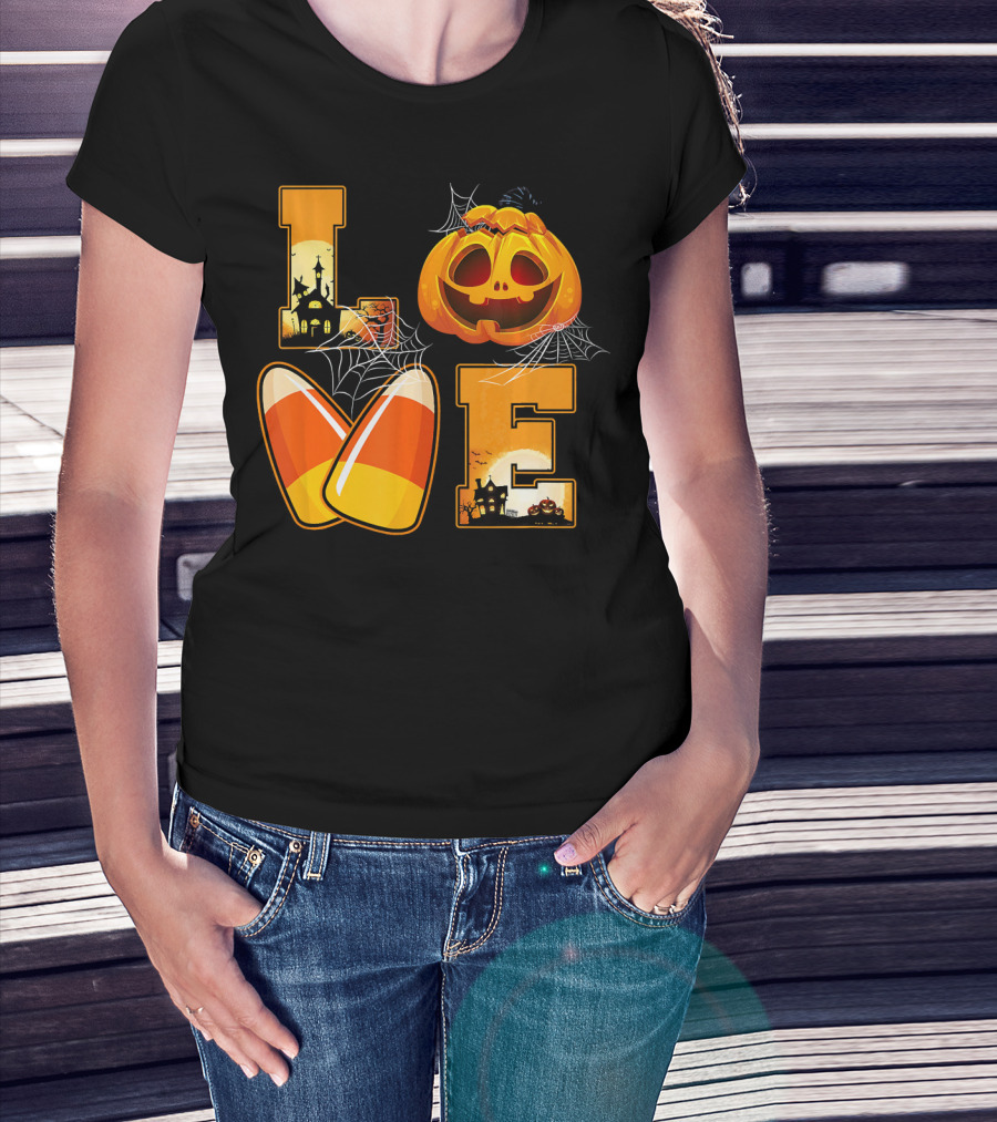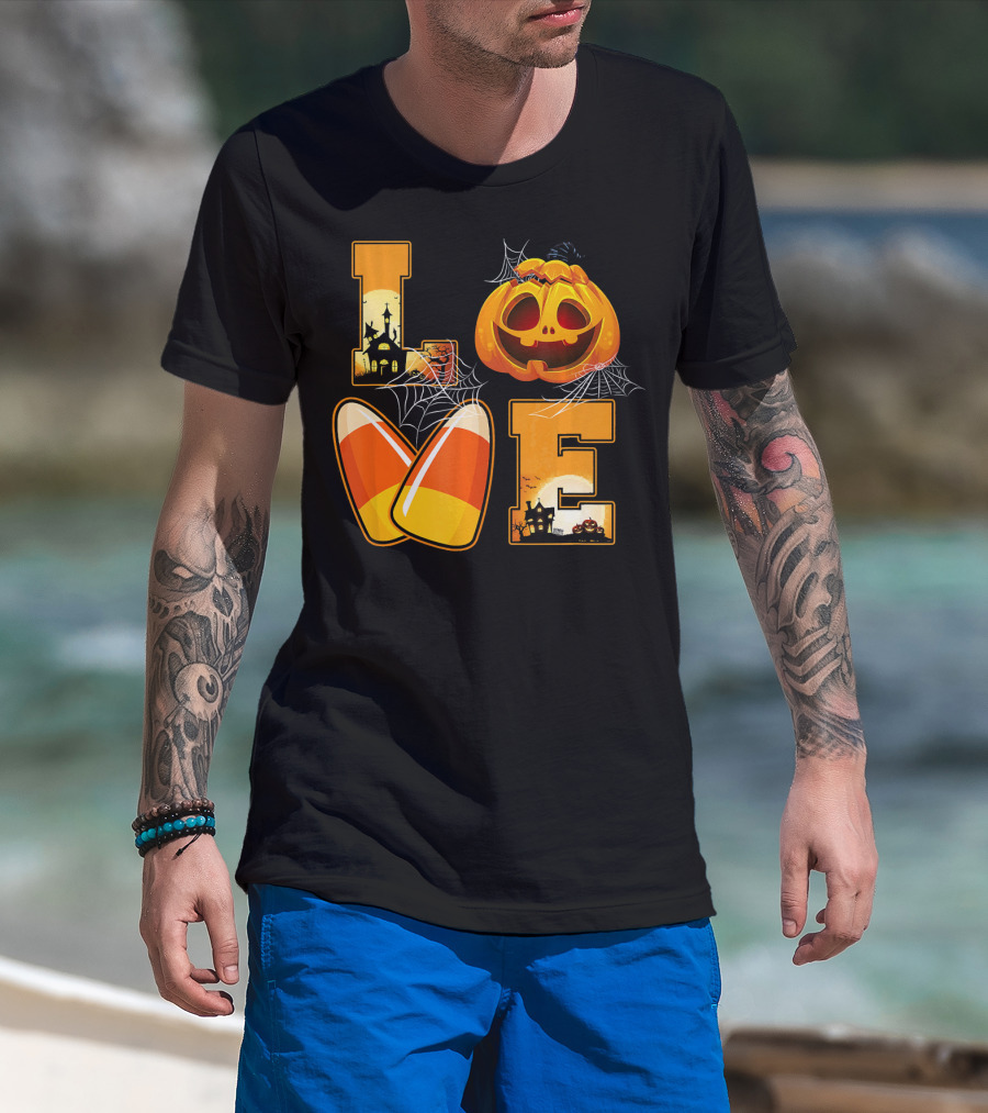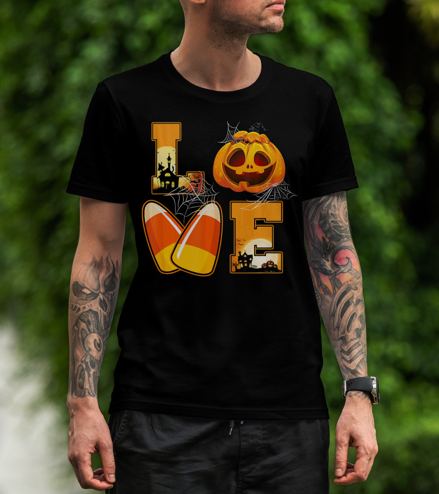 Love Candy Corn Pumpkin Halloween Spiderwebs T-Shirt