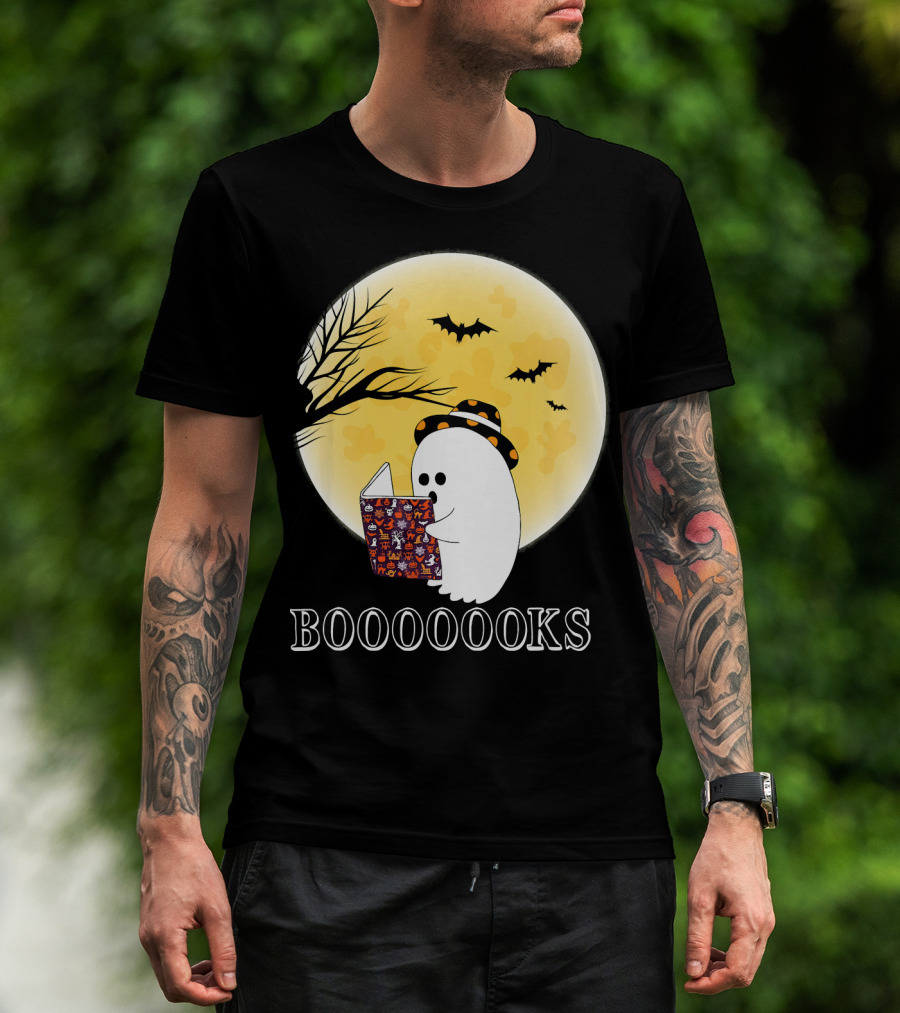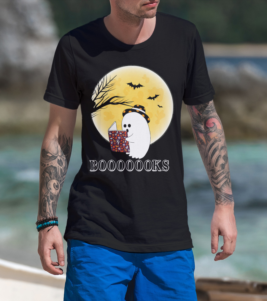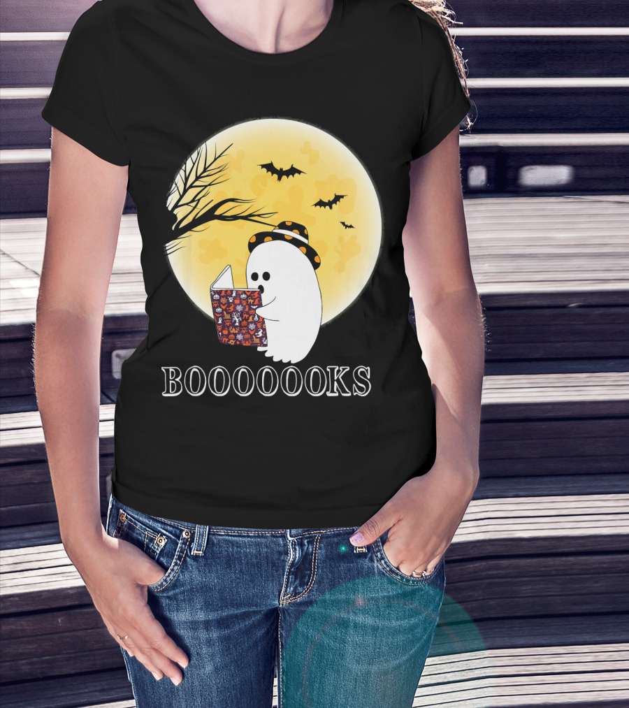 Booooooks Boo Ghost Reading Under The Full Moon Halloween T-Shirt