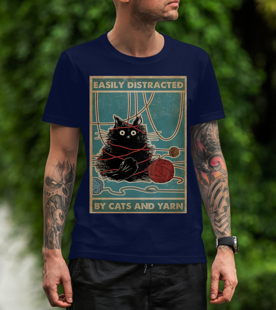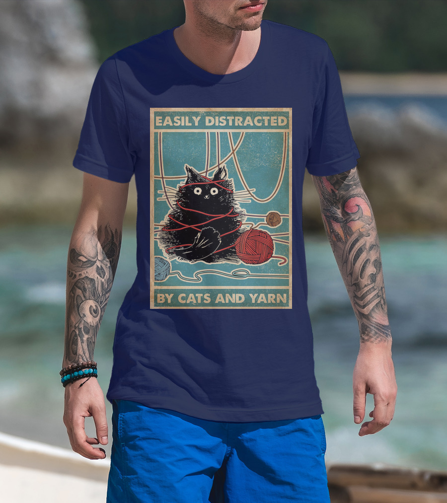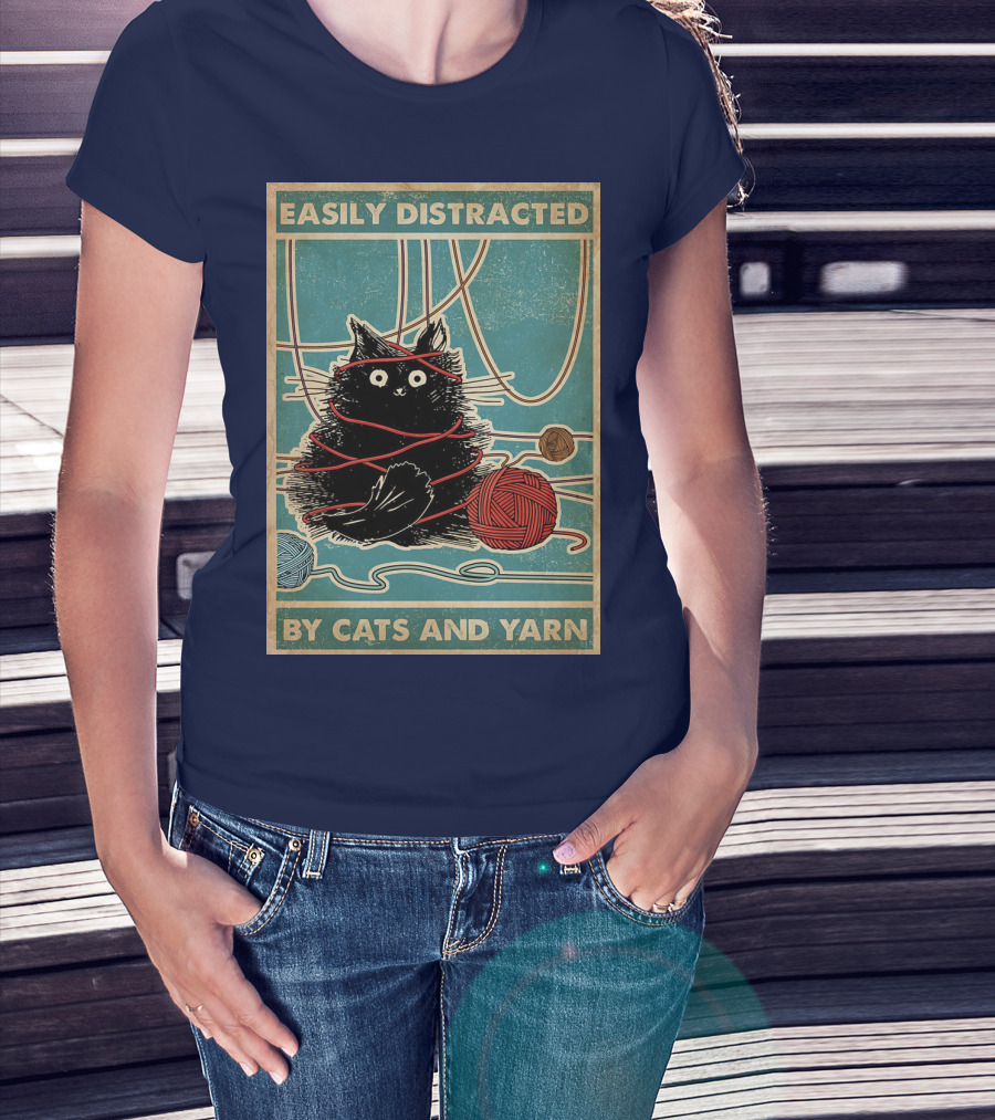 Easily Distracted Black Cat With Red Yarn And Balls Of Yarn T-Shirt