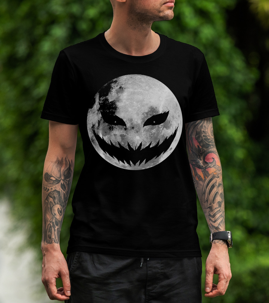 Jack O Lantern Scary Face On Moon Halloween T-Shirt