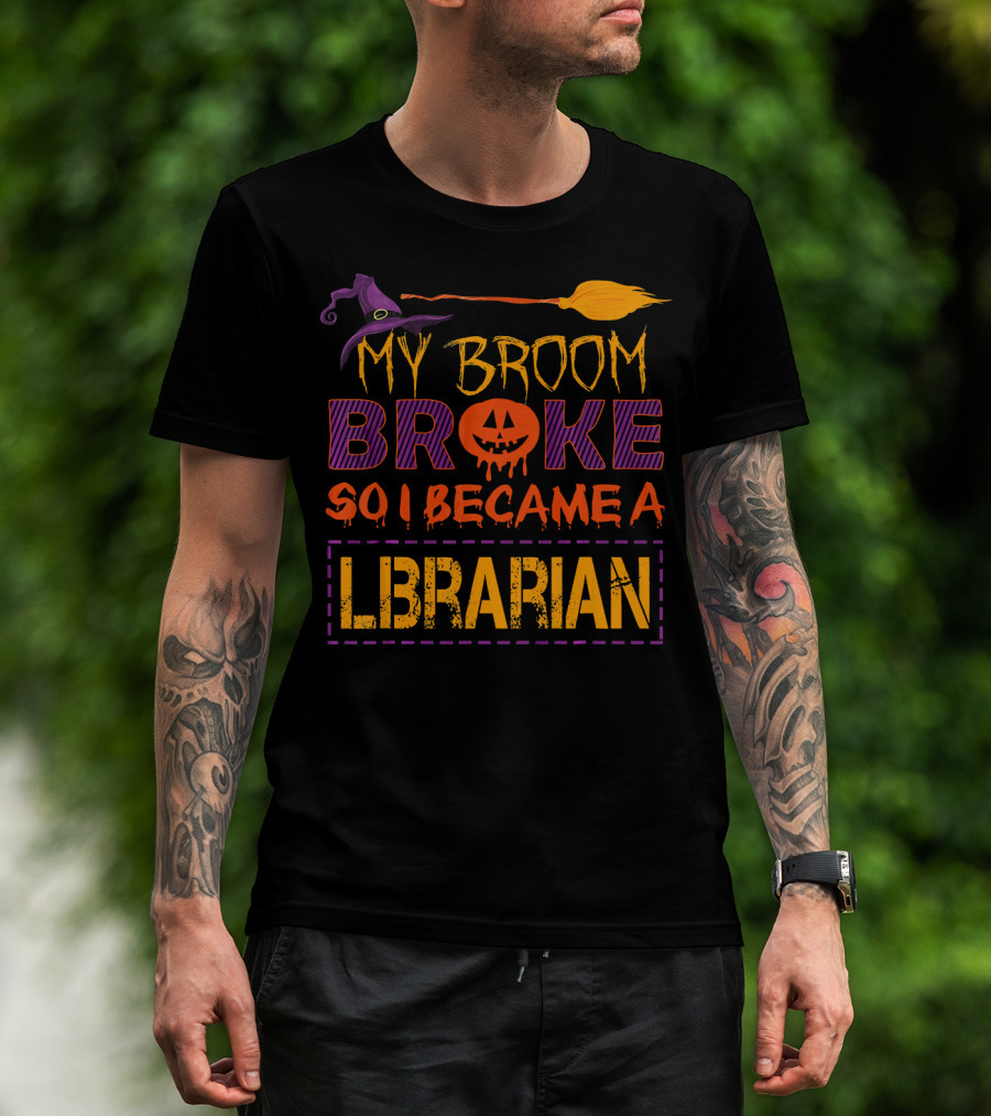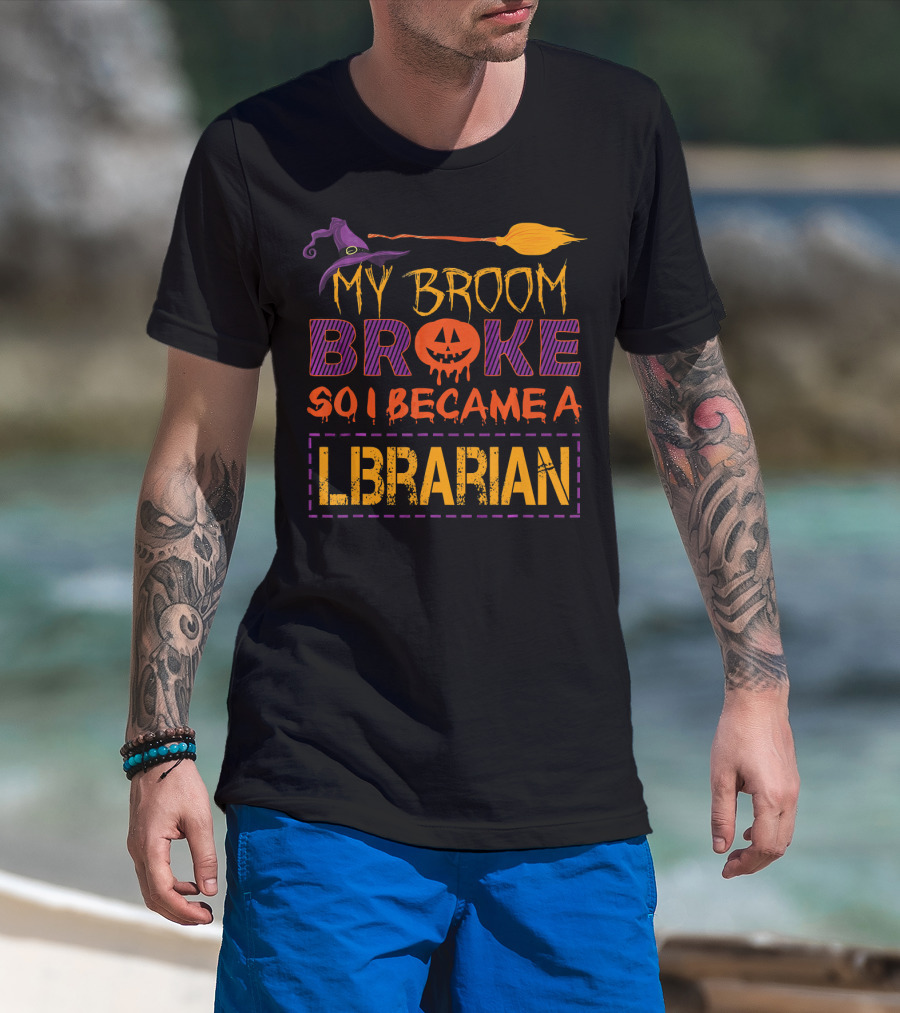 My Broom Broke So I Became A Librarian Halloween T-Shirt