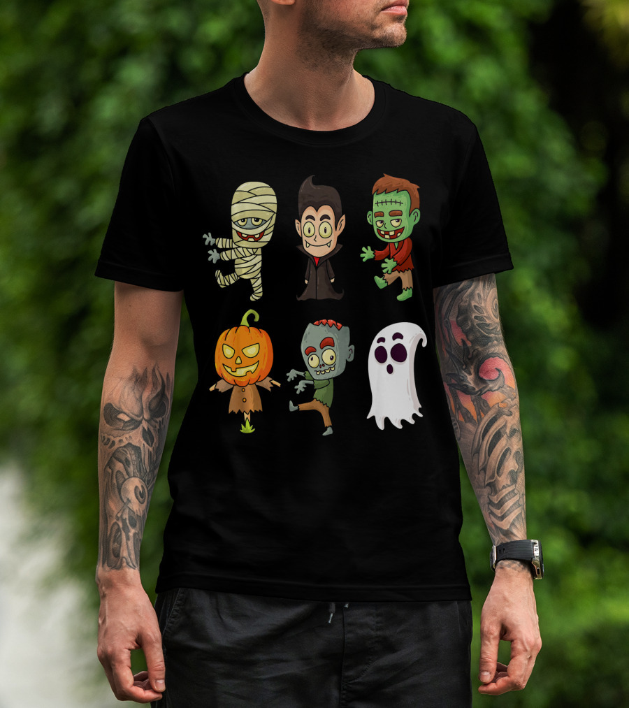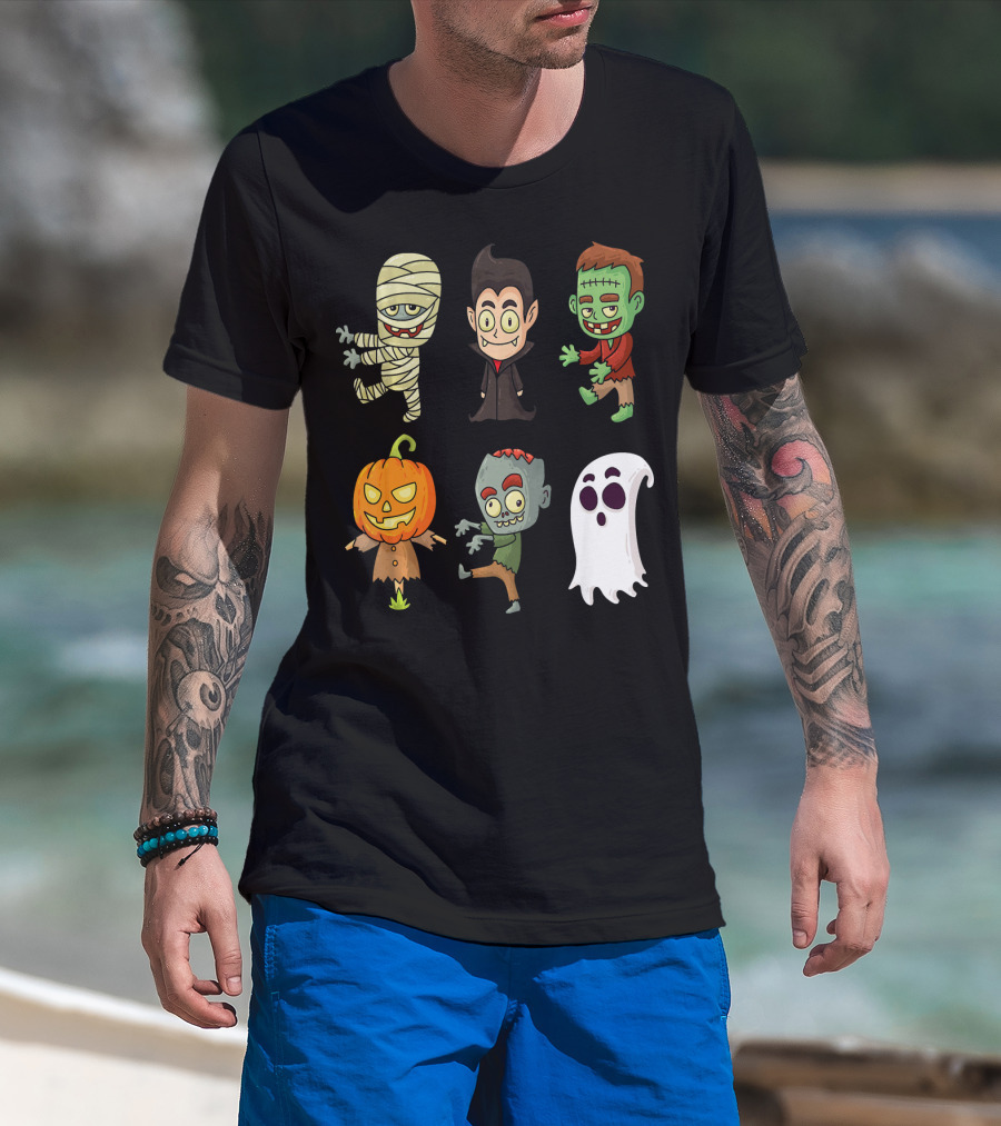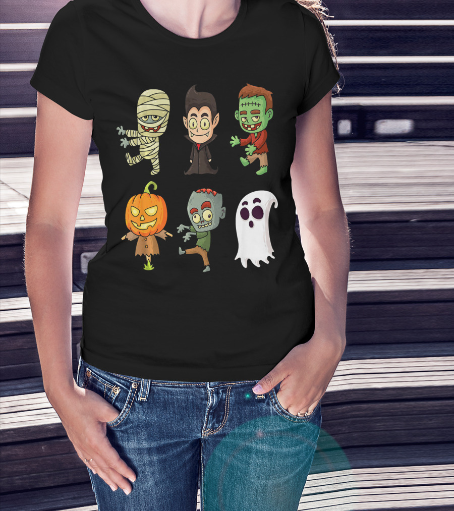 Funny Halloween Monsters Mummy Vampire Frankenstein Pumpkin Zombie Ghost T-Shirt